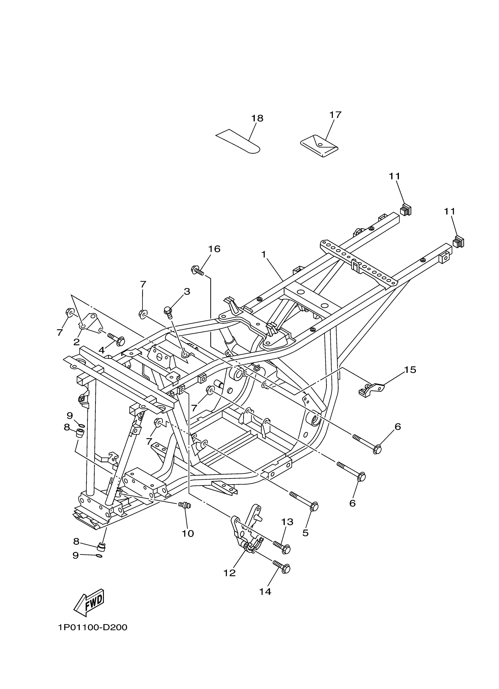 Yamaha YFM250BT (BRUIN 250) 1P01 2005 FRAME Diagram
