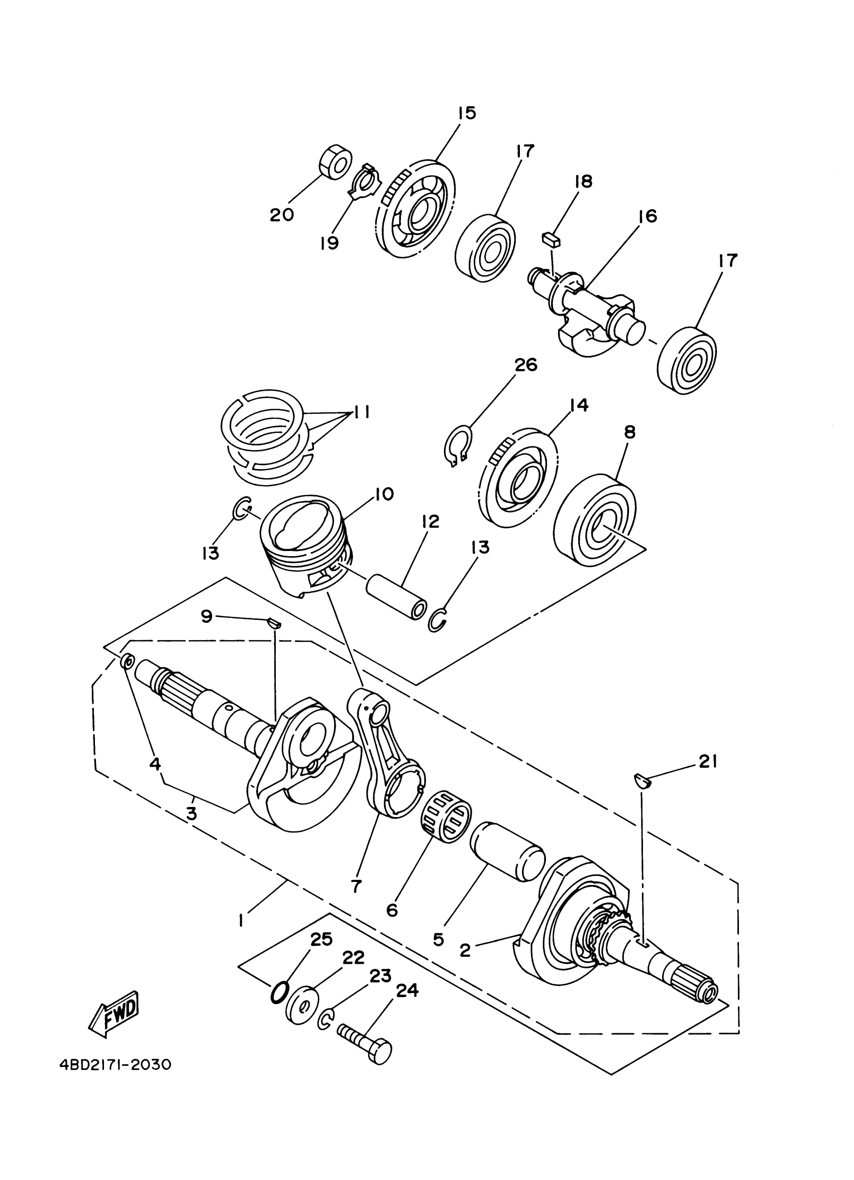 Yamaha YFM250XN (BEAR TRACKER_REALTREE) 4XEA 2001 CRANKSHAFT PISTON Diagram