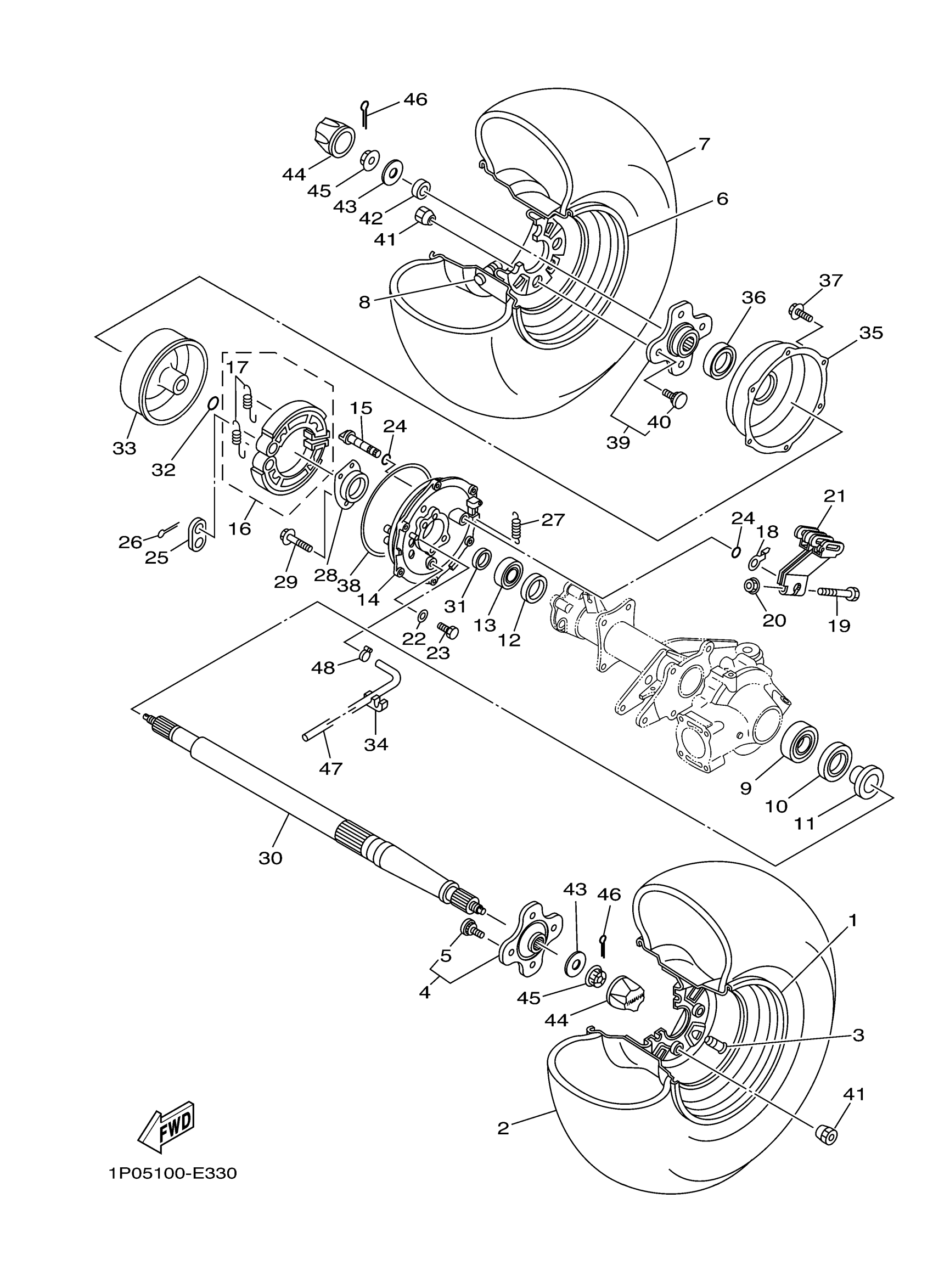 Yamaha YFM25BW (BIG BEAR 250) 1P09 2007 REAR WHEEL Diagram
