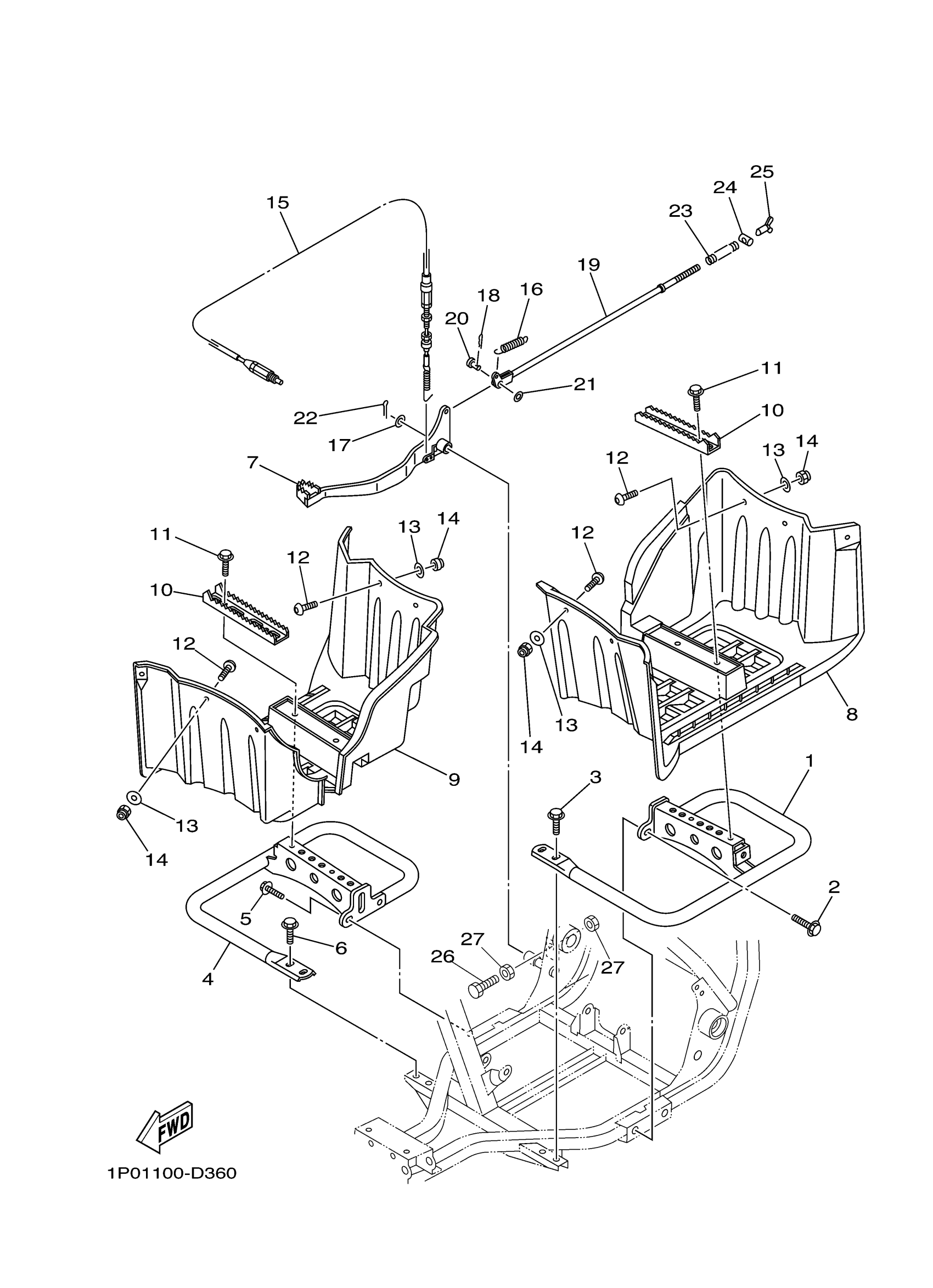 Yamaha YFM25BYB (BIG BEAR 250) 1P0H 2009 STAND FOOTREST Diagram