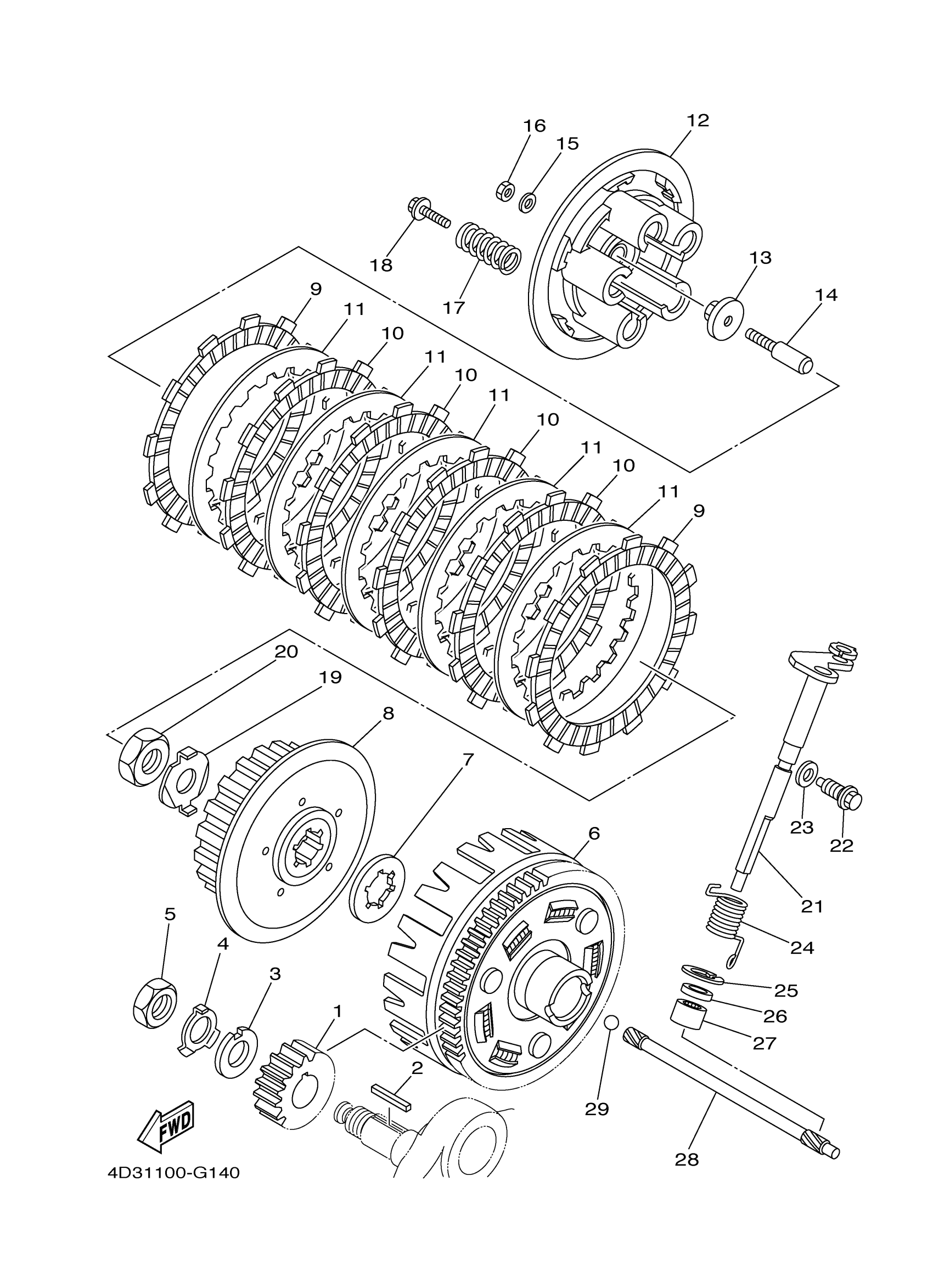 Yamaha YFM25RBW (RAPTOR 250) 1BTF0 2012 CLUTCH Diagram