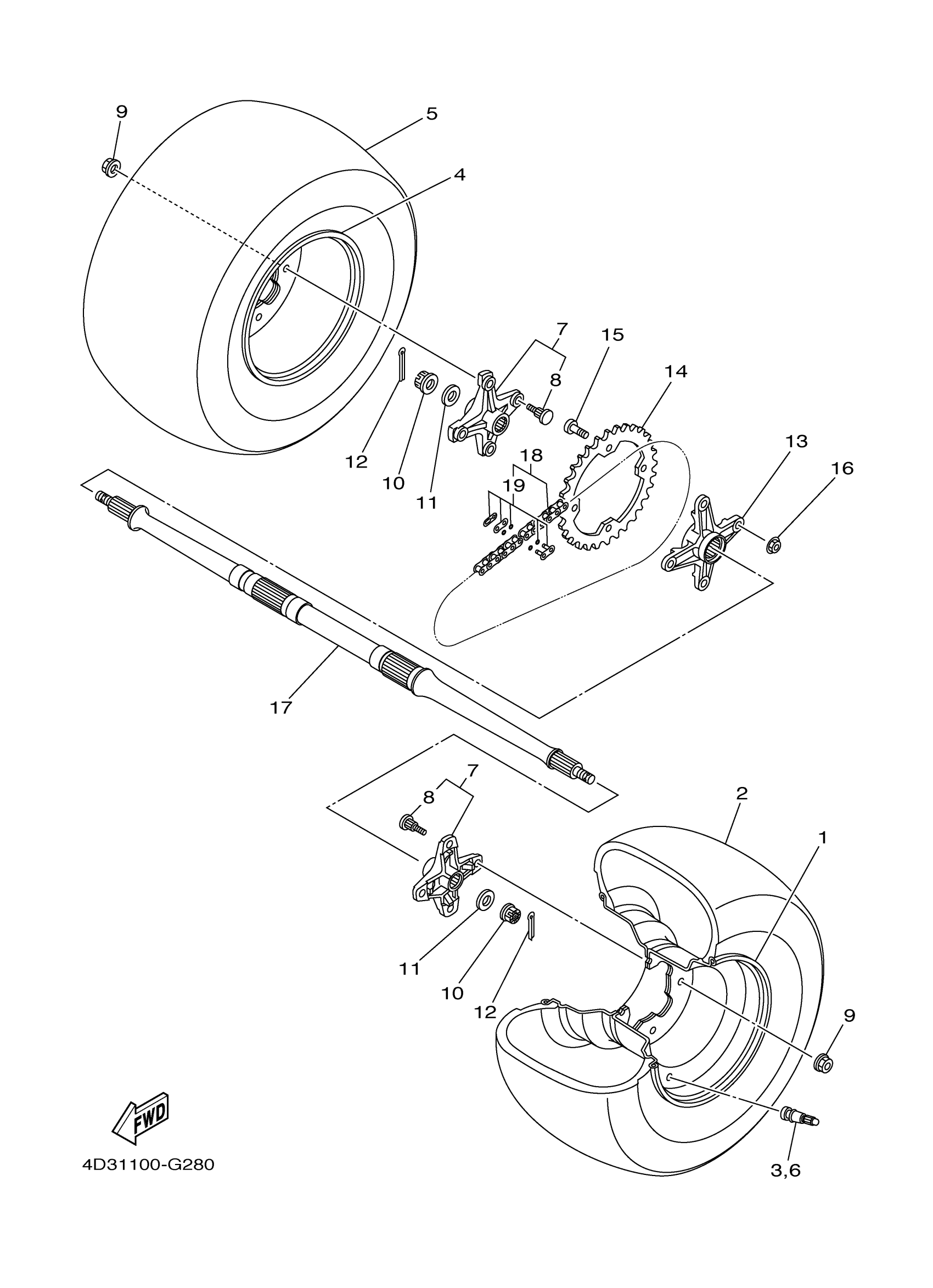 Yamaha YFM25RDW (RAPTOR 250) 1BTM0 2013 REAR WHEEL Diagram