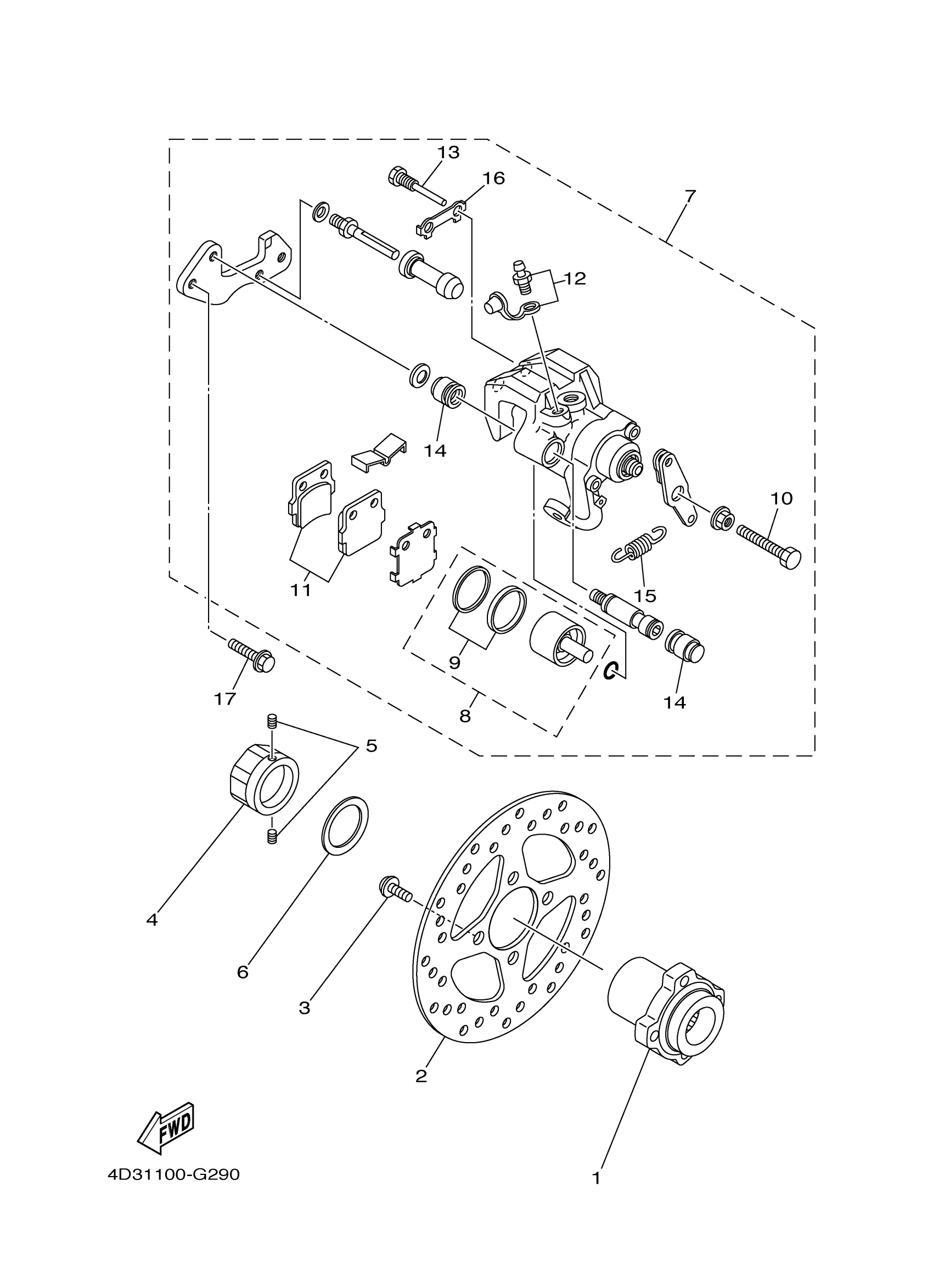 Yamaha YFM25RSEY (RAPTOR 250 SPECIAL EDITION) 4D3M 2009 REAR BRAKE CALIPER Diagram