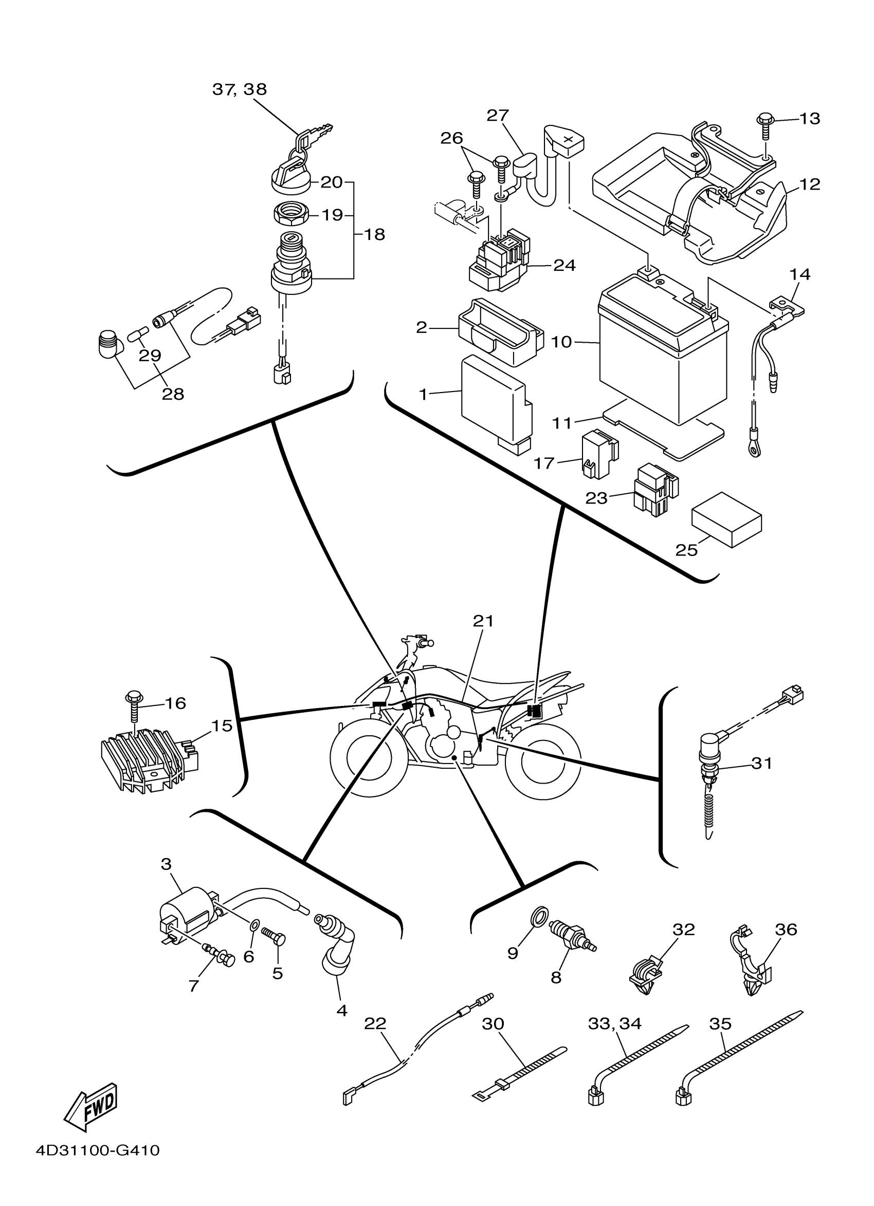 Yamaha YFM25RXL (RAPTOR 250) 4D310 2008 ELECTRICAL 1 Diagram