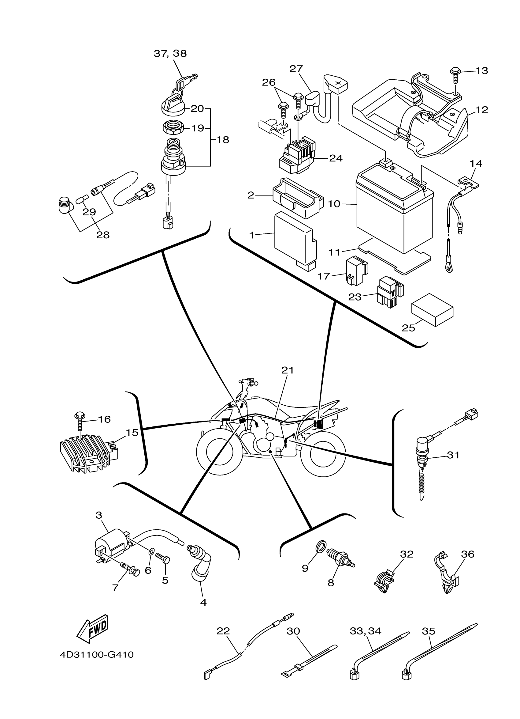 Yamaha YFM25RYW (RAPTOR 250) 4D3D0 2009 ELECTRICAL 1 Diagram