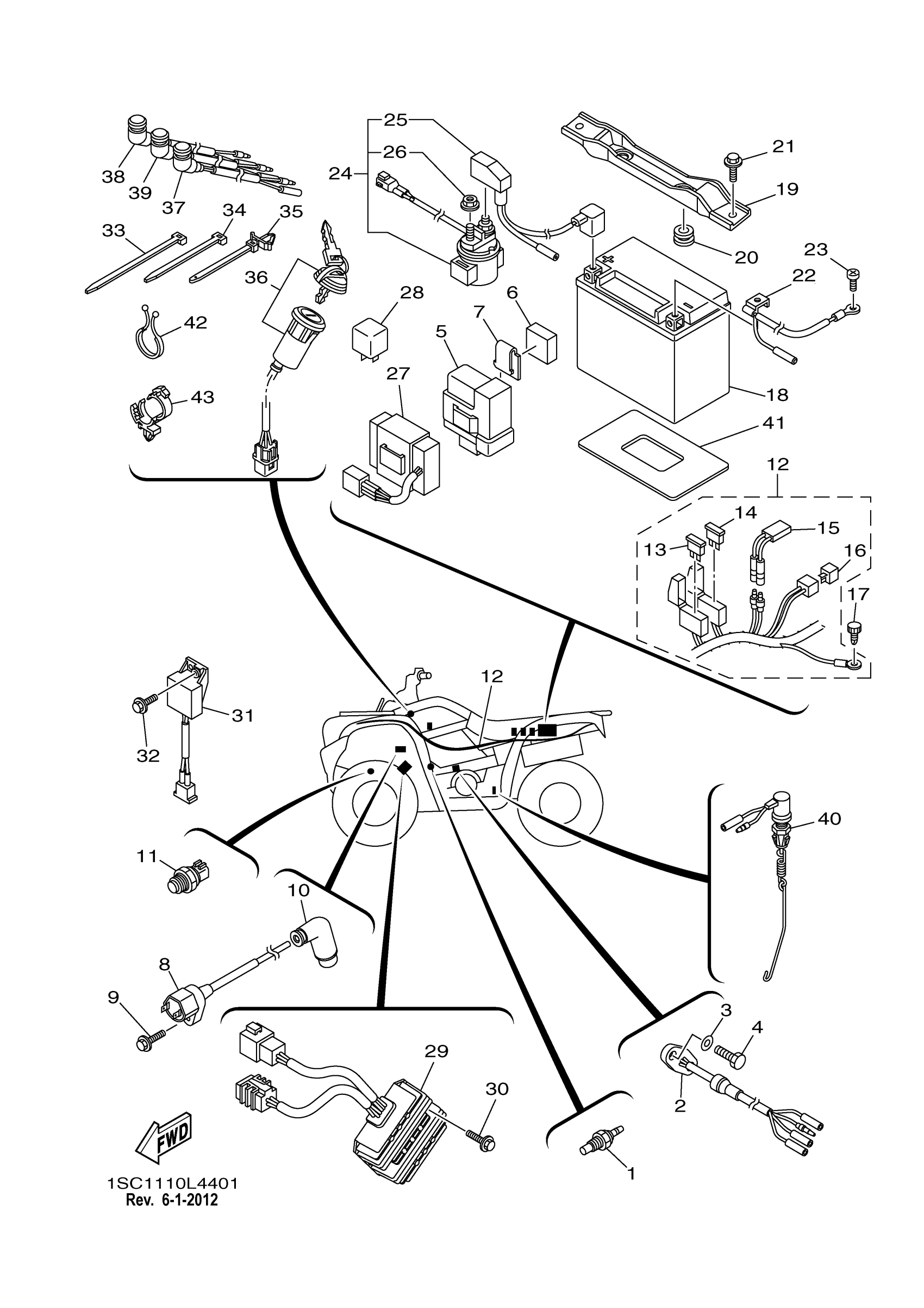 Yamaha YFM30GBL (GRIZZLY 300) 1SC11 2012 ELECTRICAL 1 Diagram