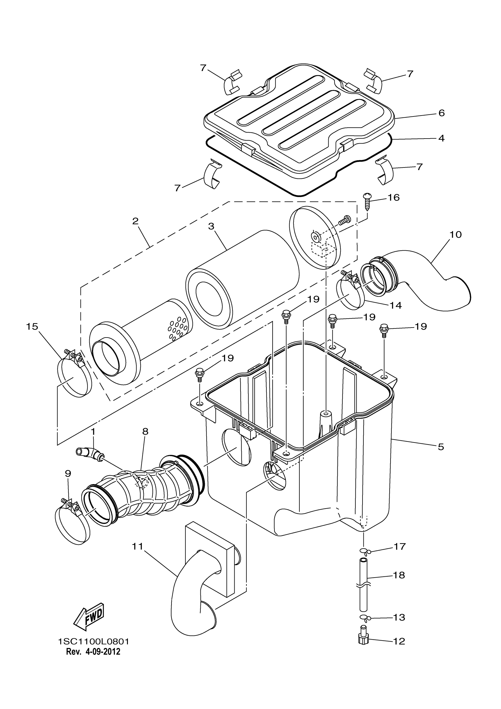 Yamaha YFM30GBL (GRIZZLY 300) 1SC11 2012 INTAKE Diagram