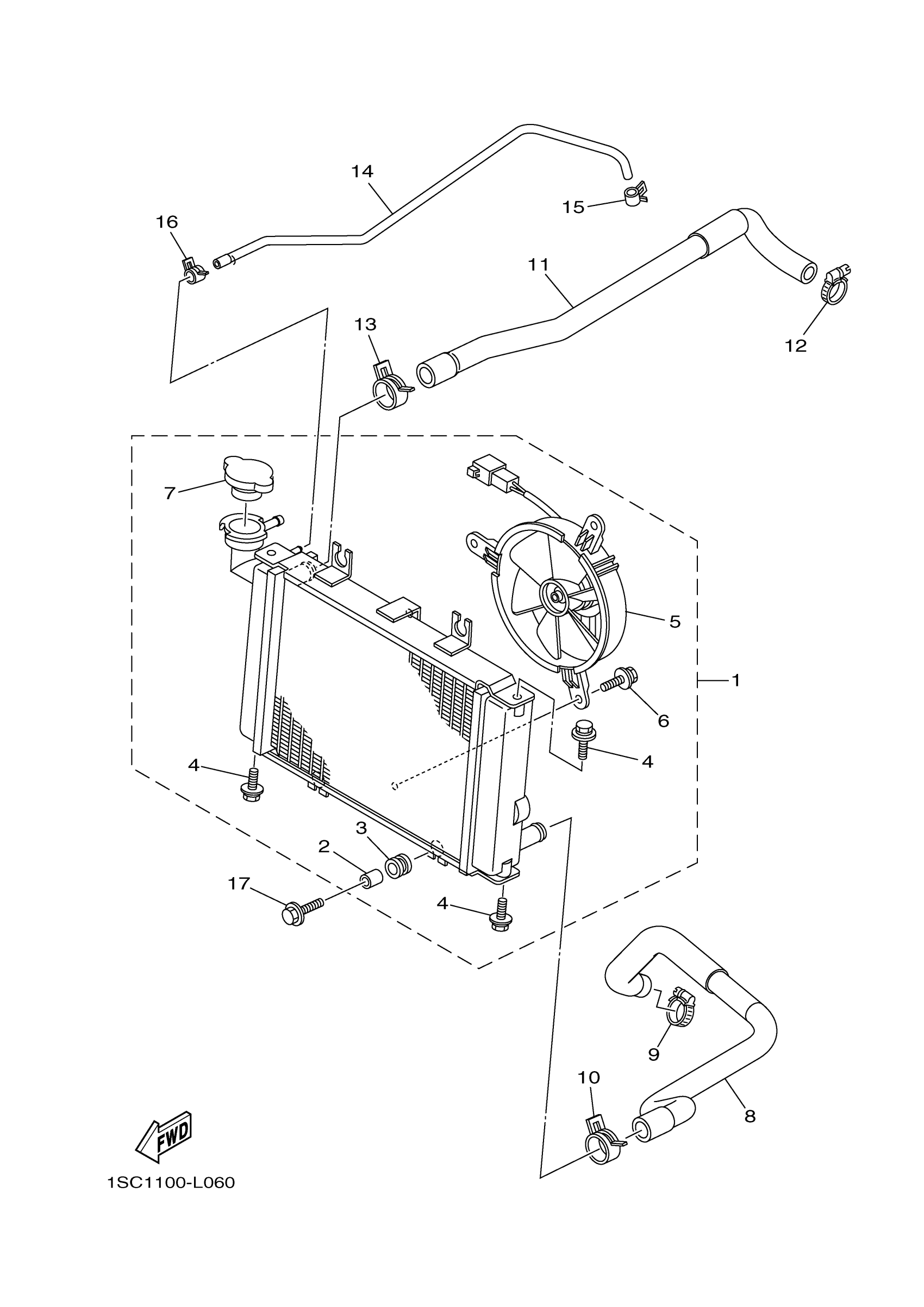 Yamaha YFM30GDGR (GRIZZLY 300) 1SC5 2013 RADIATOR HOSE Diagram