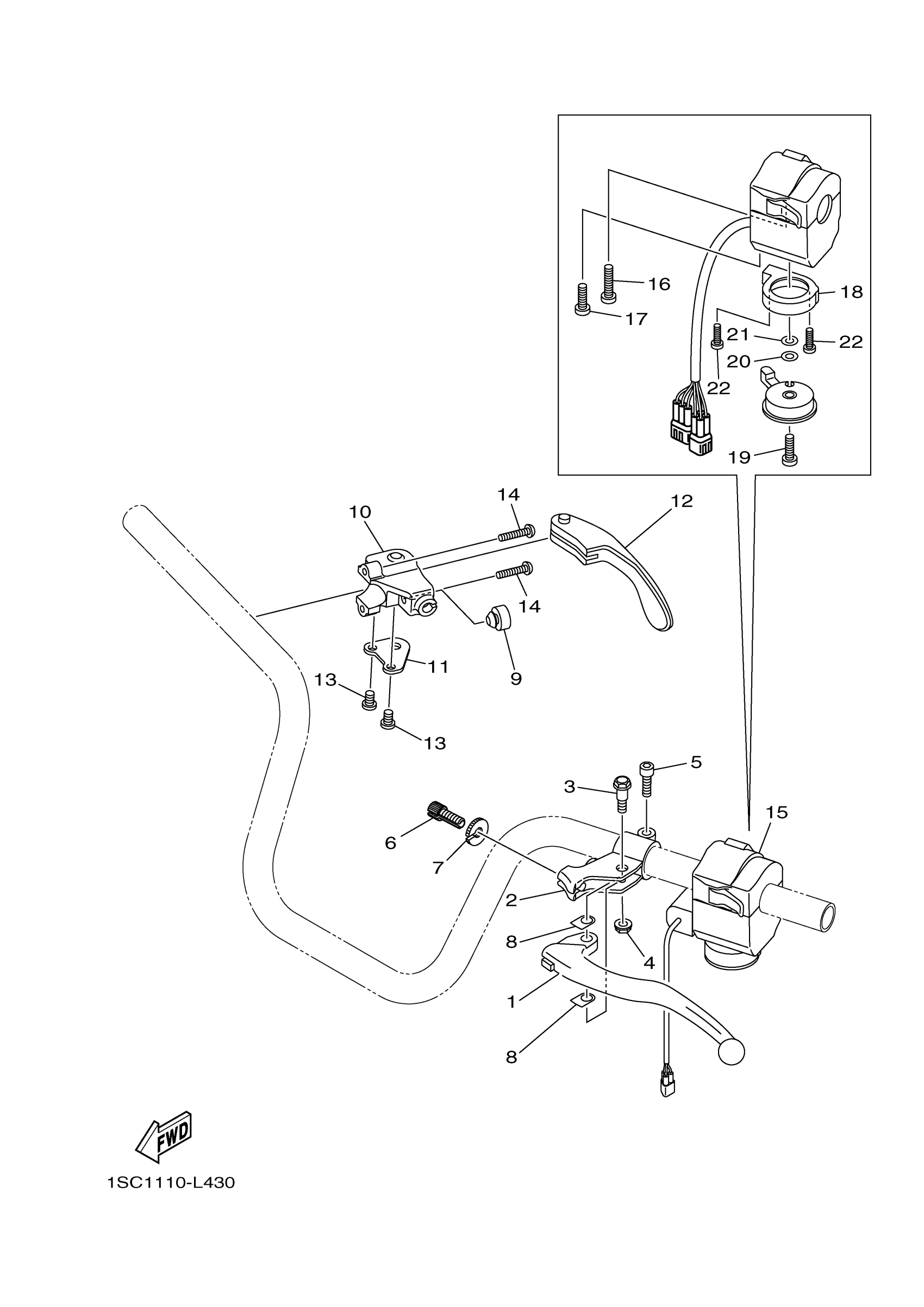 Yamaha YFM30GDR (GRIZZLY 300) 1SC51 2013 HANDLE SWITCH LEVER Diagram