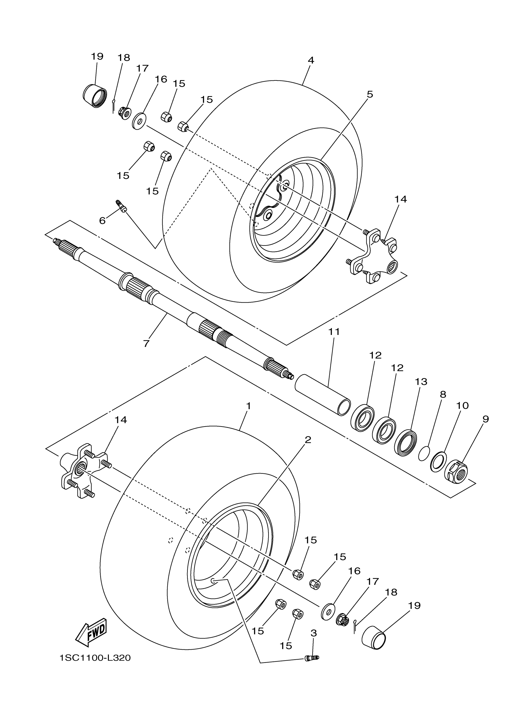 Yamaha YFM30GDR (GRIZZLY 300) 1SC51 2013 REAR WHEEL Diagram