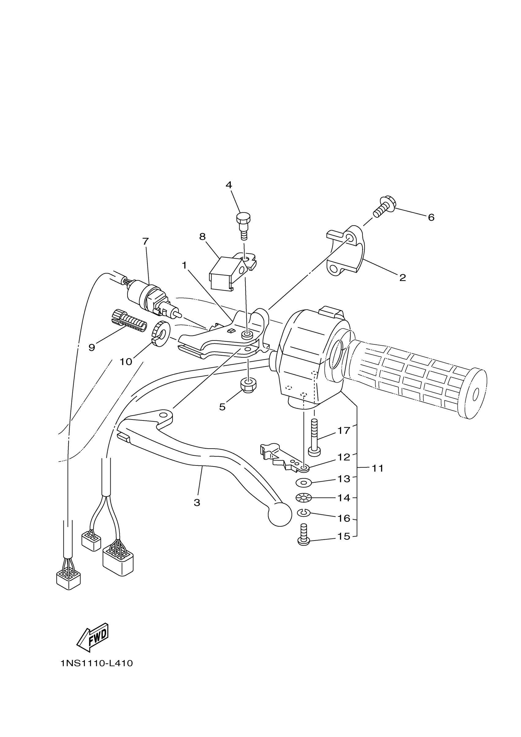 Yamaha YFM350DER (GRIZZLY 350 4WD) 1NSC1 2014 HANDLE SWITCH LEVER Diagram