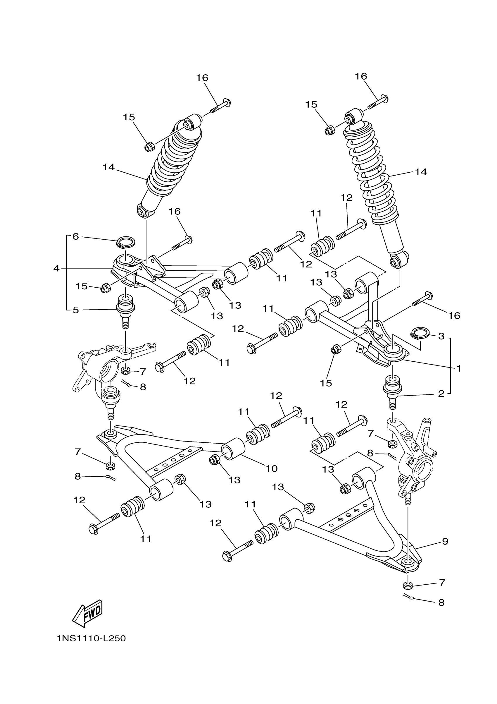 Yamaha YFM350DHEH (GRIZZLY 350 HUNT 4WD) 1NSG 2014 FRONT SUSPENSION WHEEL Diagram