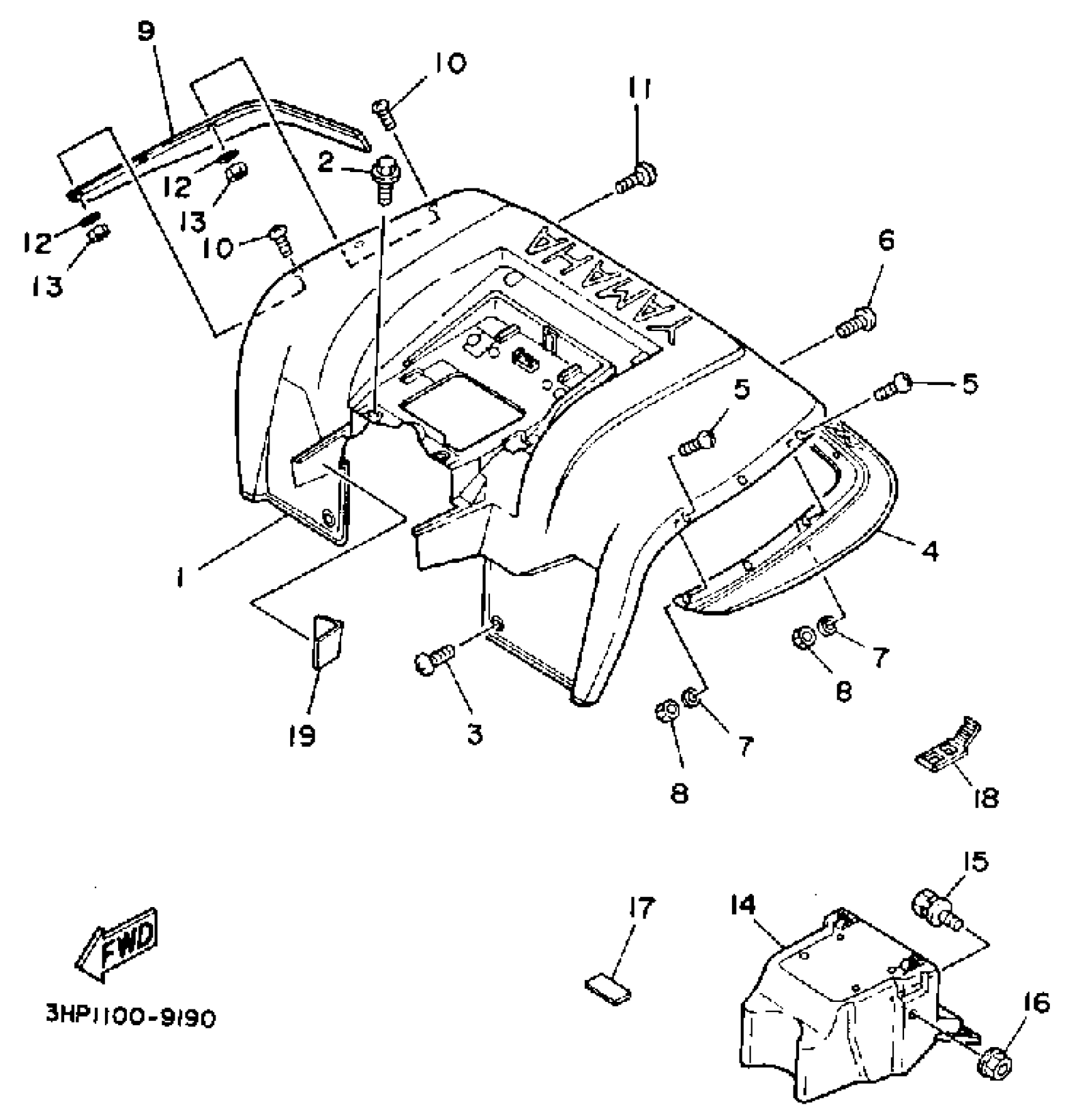 Yamaha YFM350ERA (MOTO-4) 3HP2 1990 REAR FENDER Diagram