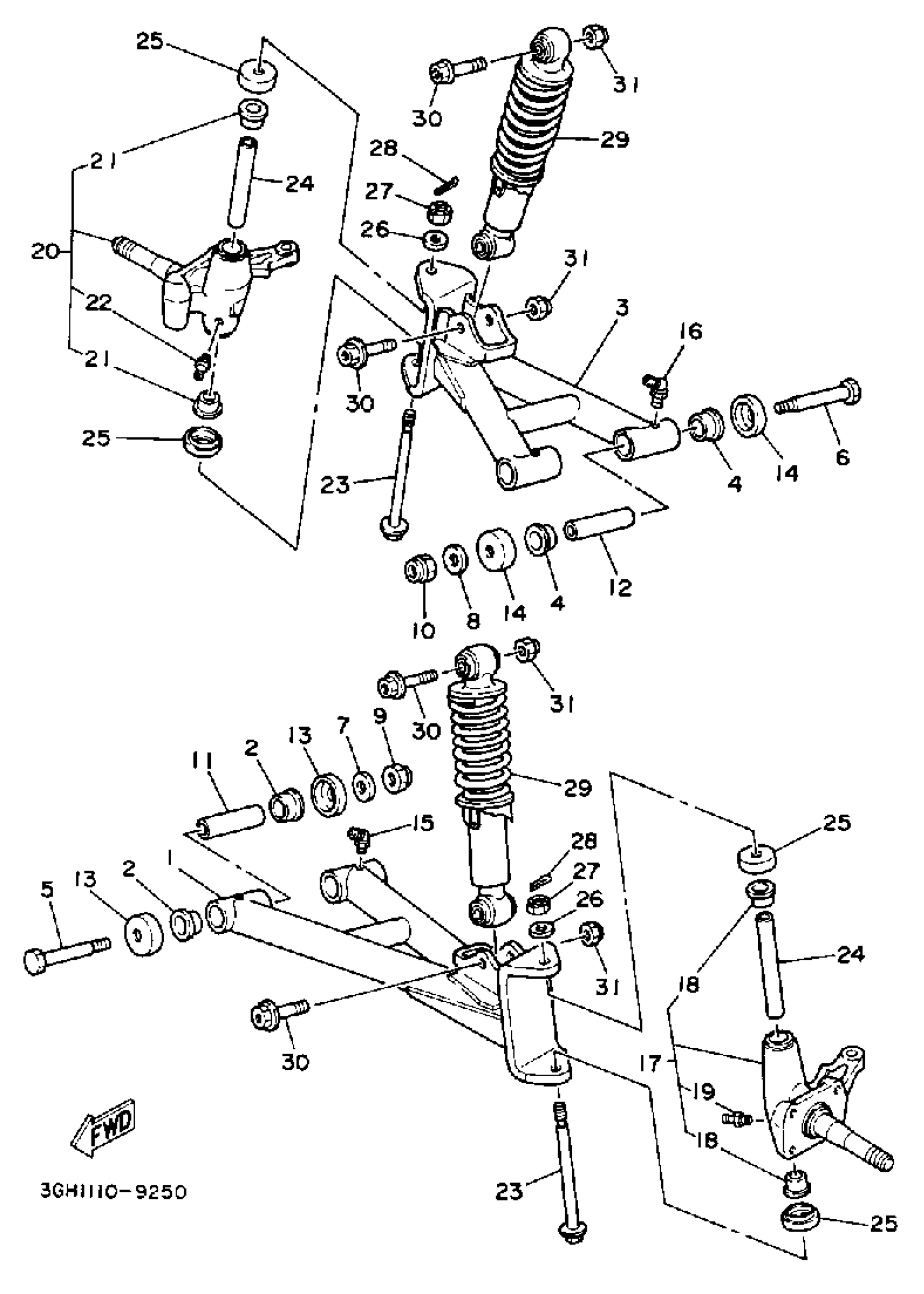Yamaha YFM350ERD (MOTO-4) 3HP7 1992 FRONT SUSPENSION-WHEEL Diagram