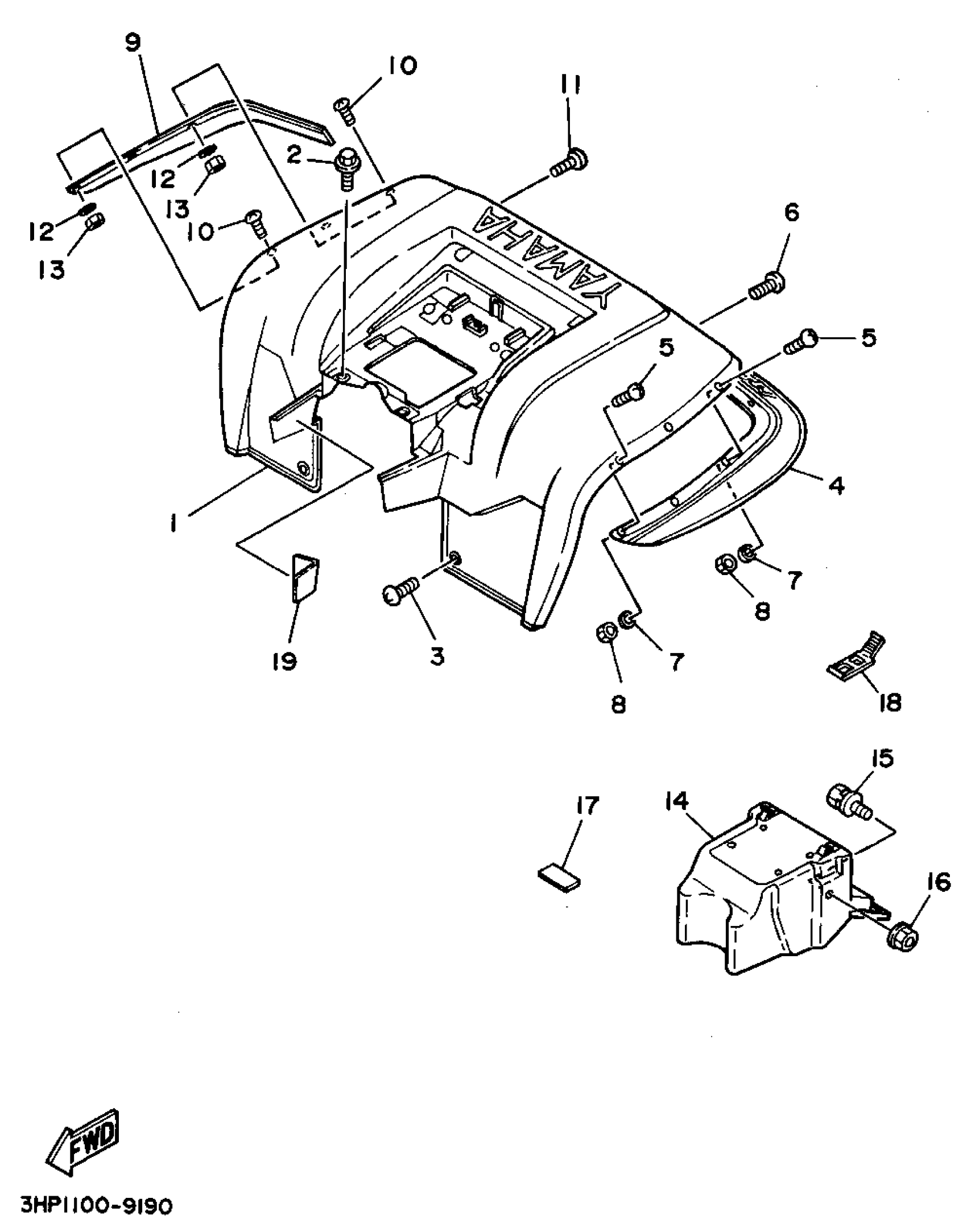 Yamaha YFM350ERG (MOTO-4) 1995 REAR FENDER Diagram