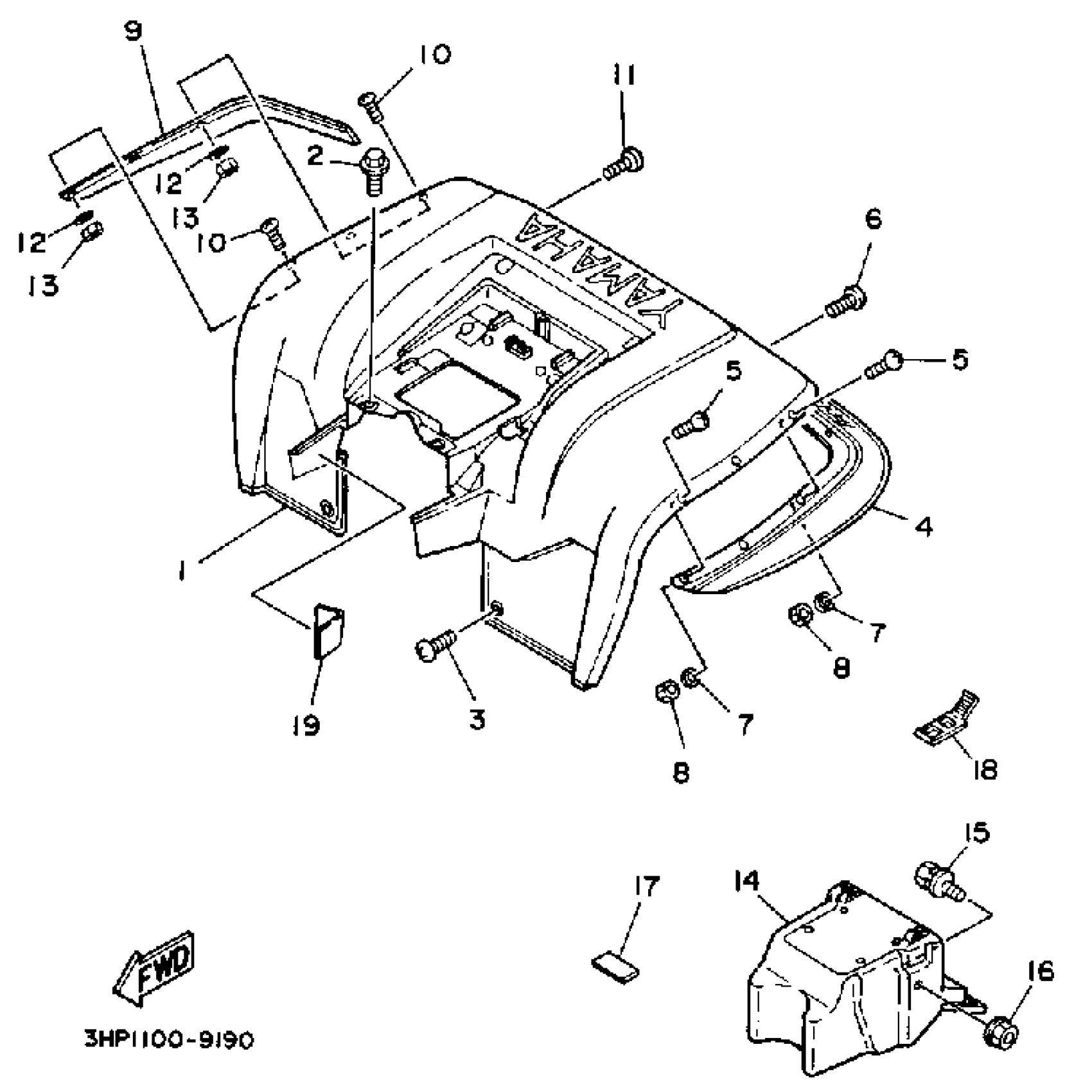 Yamaha YFM350ERW (MOTO-4) 1989 REAR FENDER Diagram