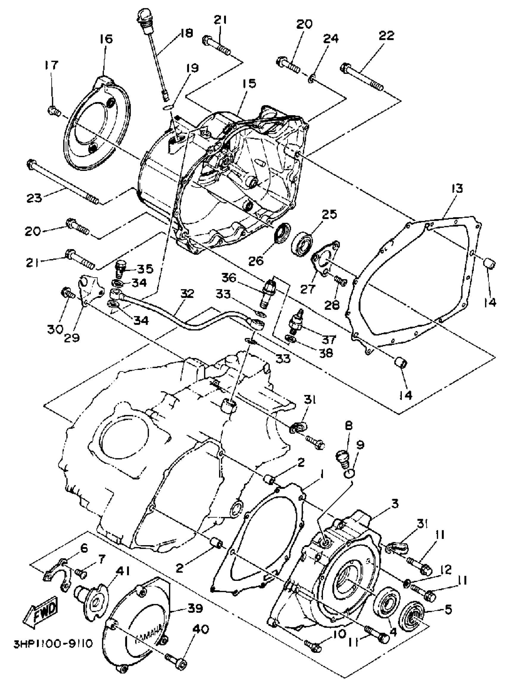 Yamaha YFM350FWA (BIG BEAR 4WD) 3HN3 1990 CRANKCASE COVER 1 Diagram