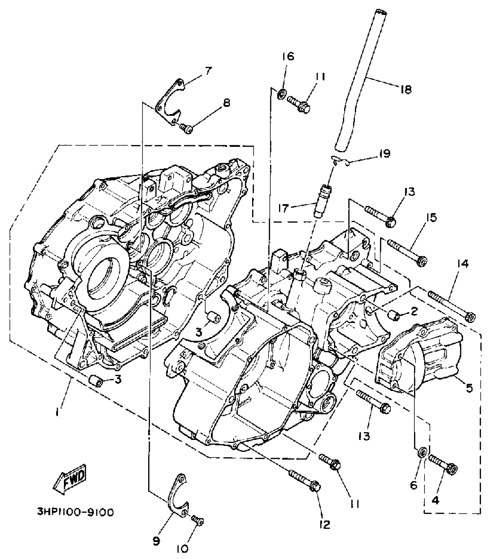 Yamaha YFM350FWA (BIG BEAR 4WD) 3HN3 1990 CRANKCASE Diagram