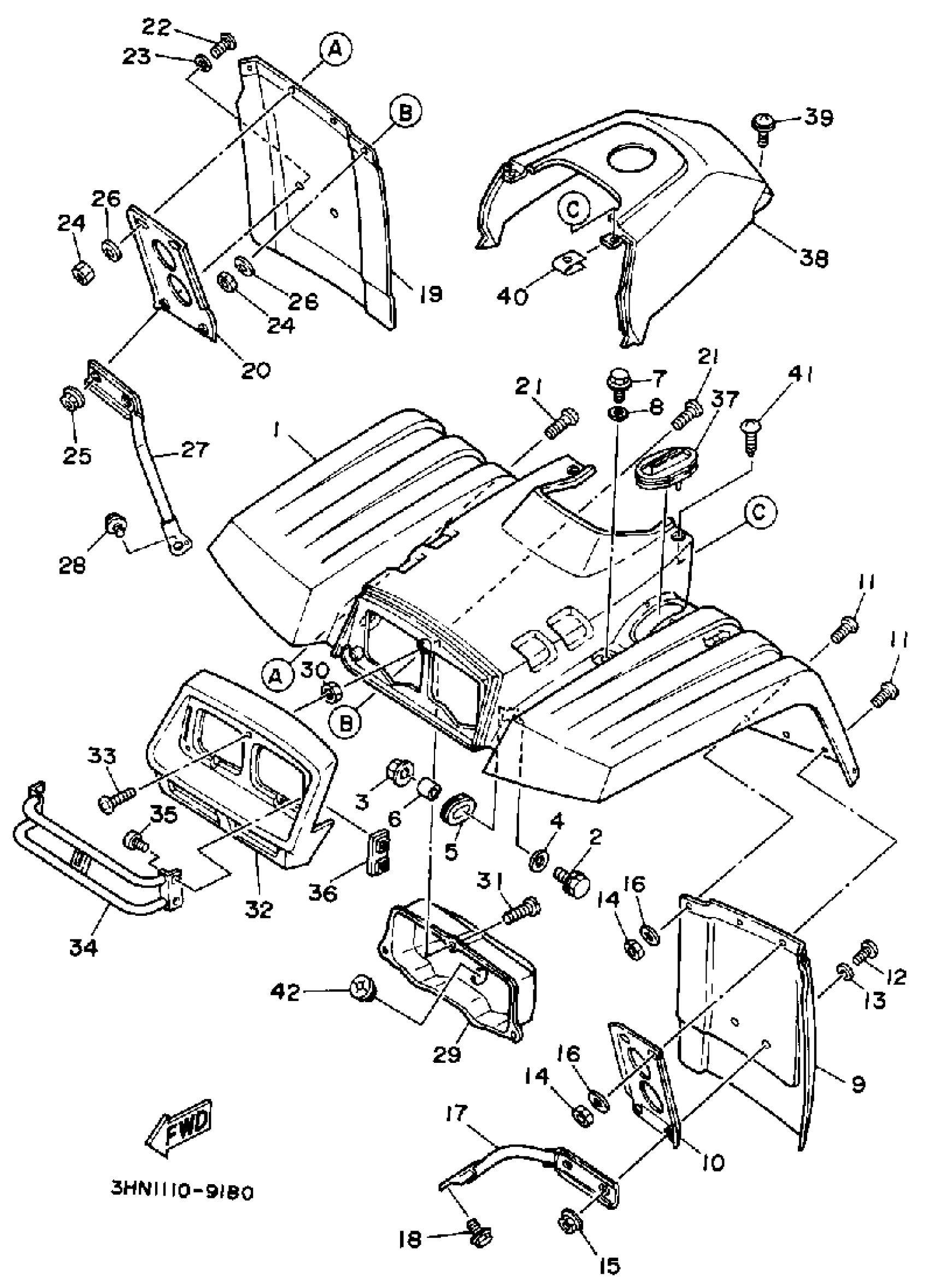 Yamaha YFM350FWA (BIG BEAR 4WD) 3HN3 1990 FRONT FENDER Diagram