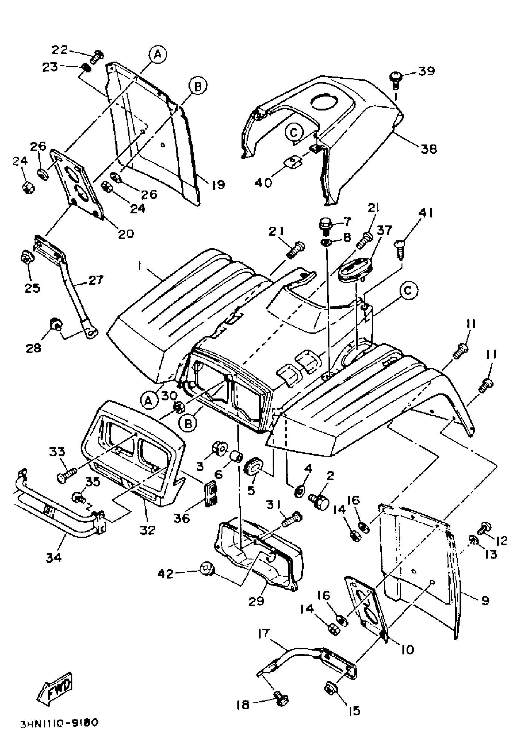 Yamaha YFM350FWB (BIG BEAR 4WD) 3HN6 1991 FRONT FENDER Diagram