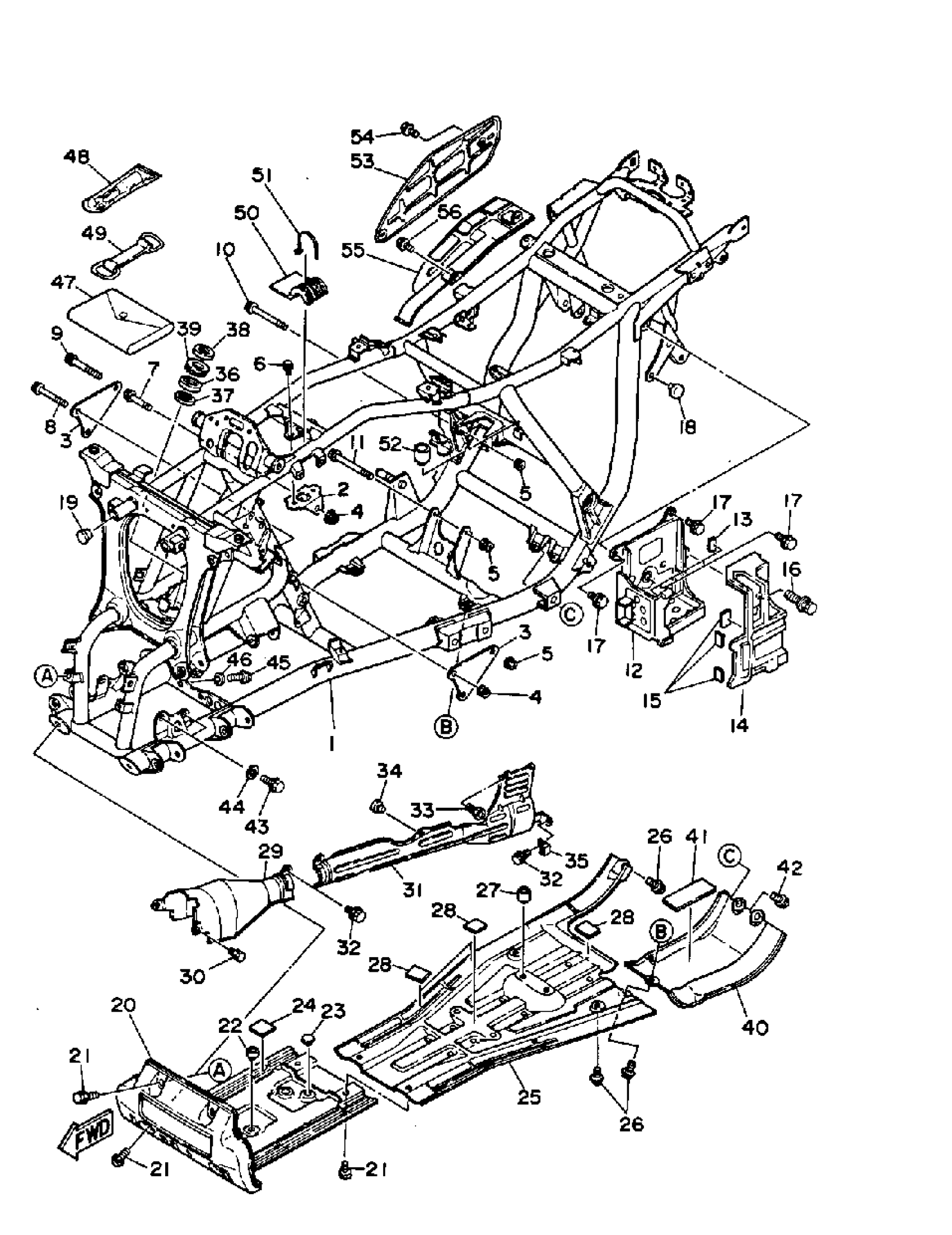 Yamaha YFM350FWB_MNH (BIG BEAR 4WD) 3HN6 1991 FRAME Diagram