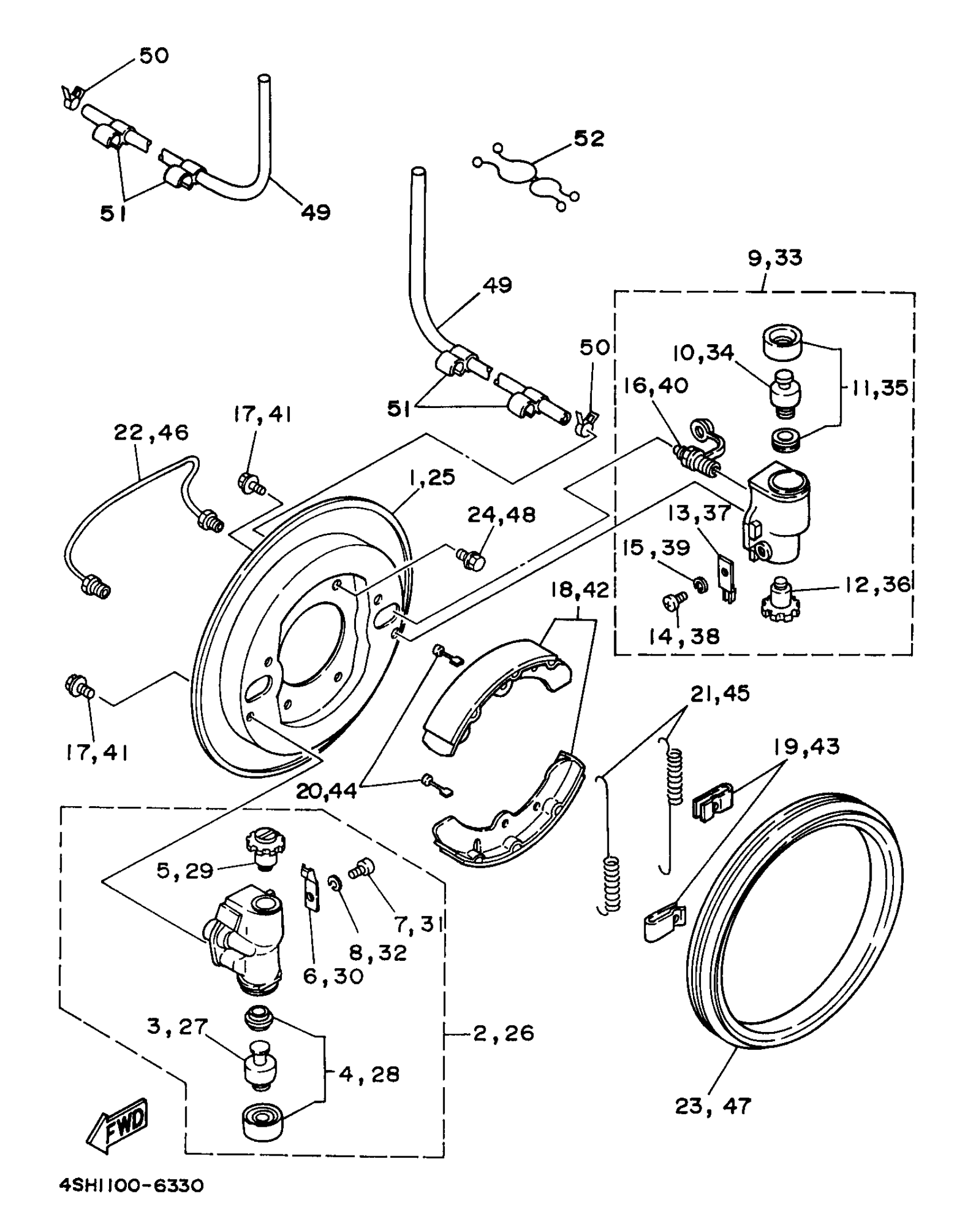 Yamaha YFM350FWBJ (BIG BEAR 4WD) 4WU1 1997 FRONT BRAKE Diagram