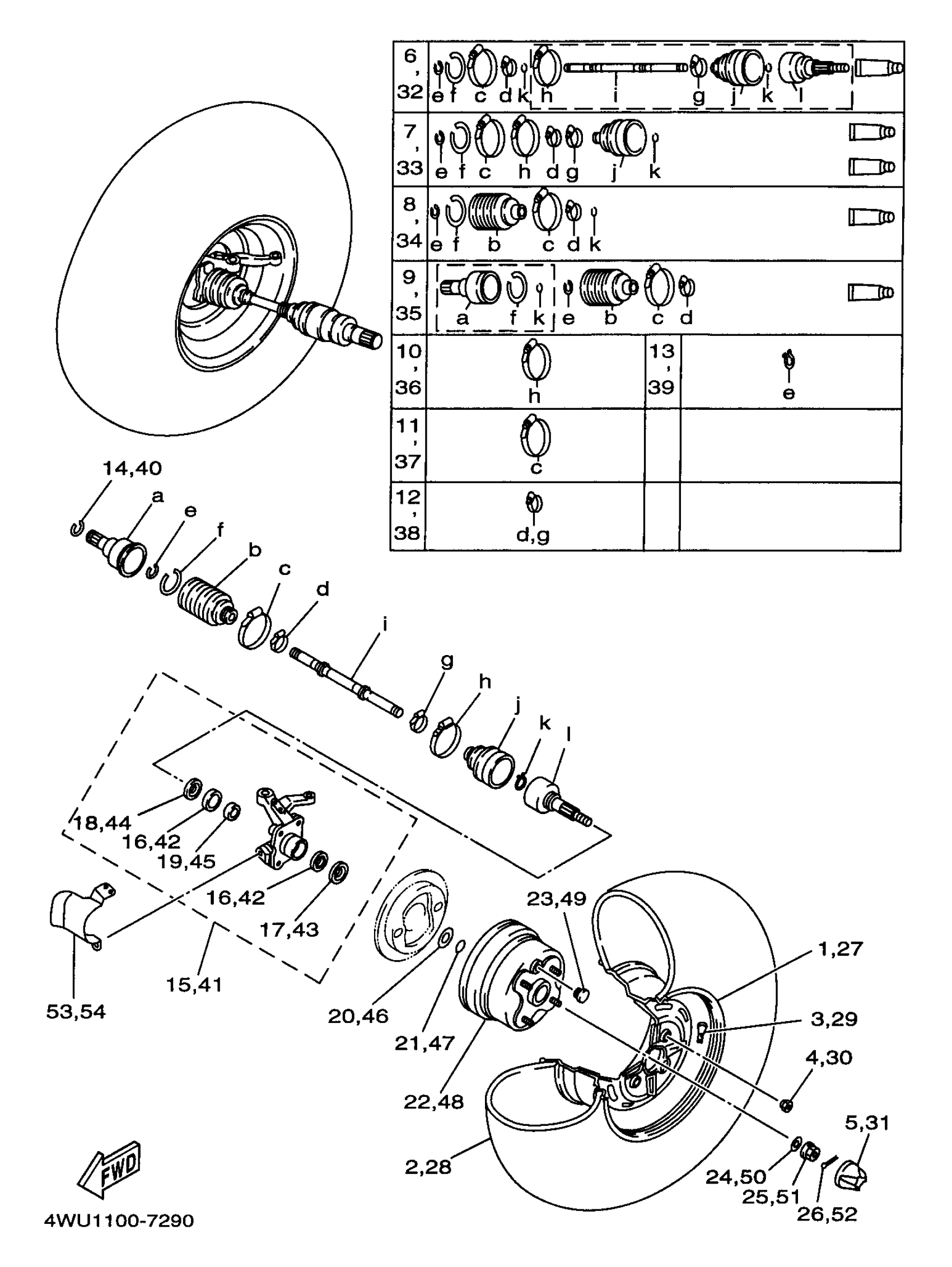 Yamaha YFM350FWBJ_MNH (BIG BEAR 4WD) 4WU1 1997 FRONT WHEEL Diagram