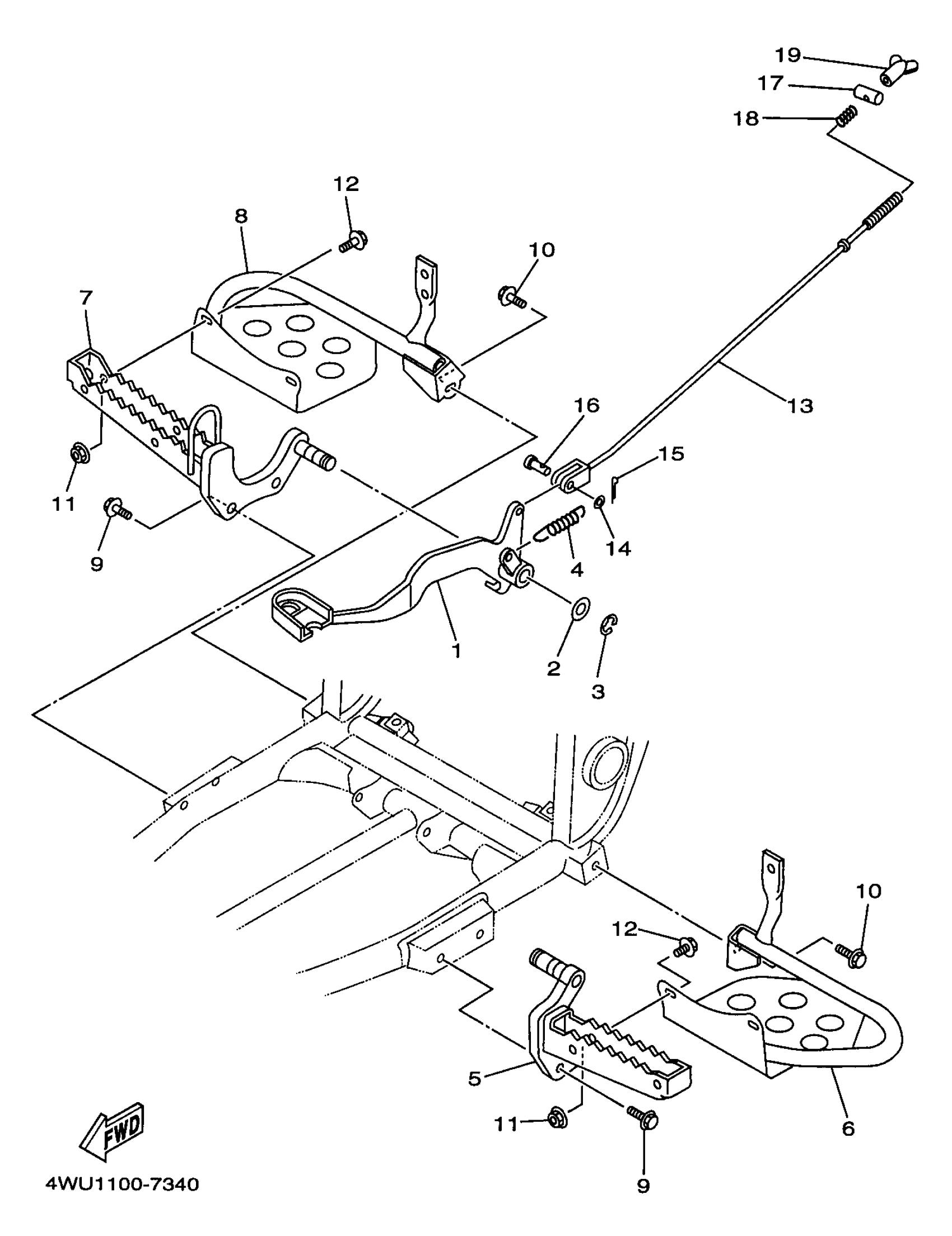 Yamaha YFM350FWBJ_MNH (BIG BEAR 4WD) 4WU1 1997 STAND FOOTREST Diagram