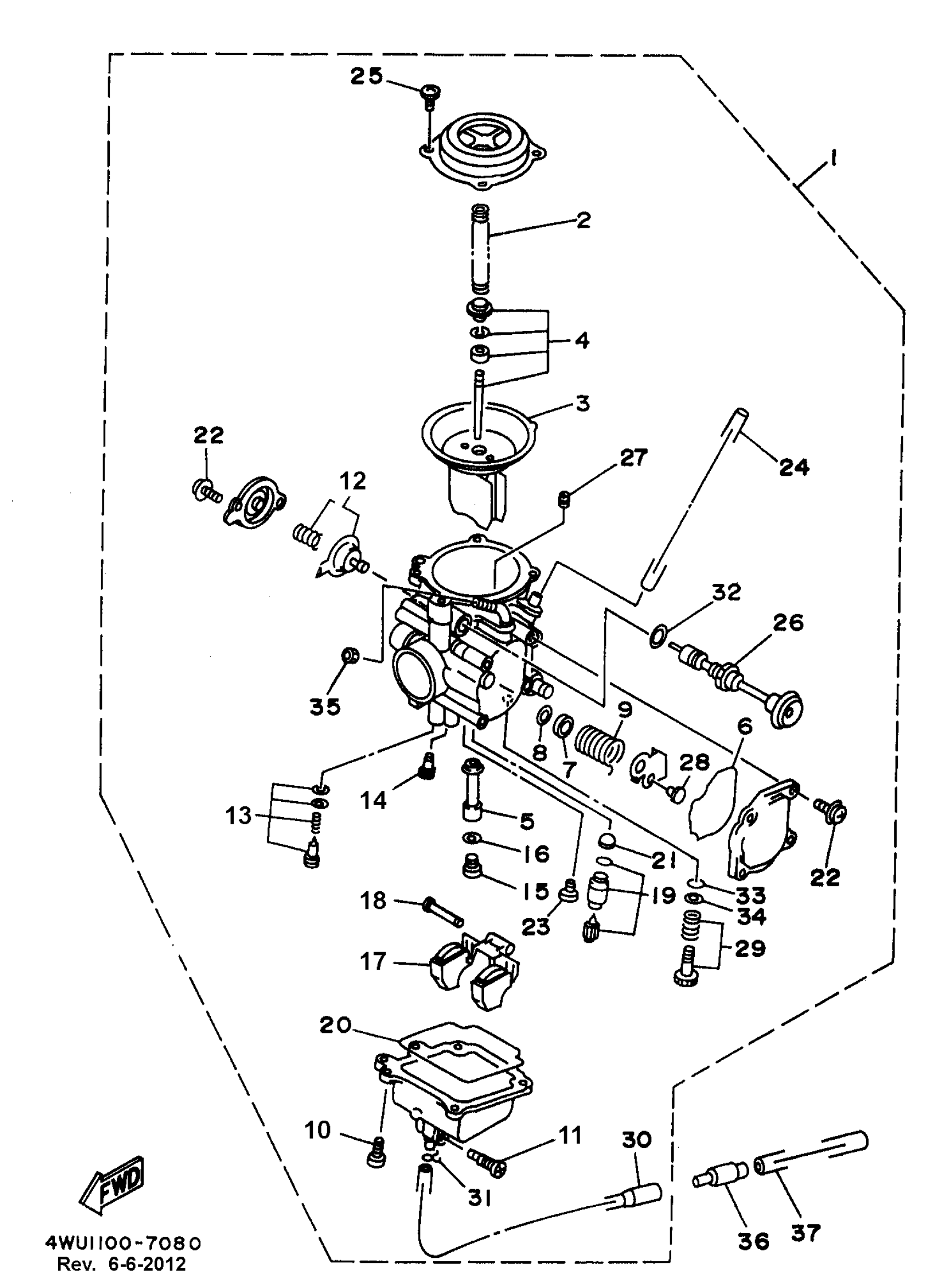 Yamaha YFM350FWBKC (BIG BEAR 4WD) 4WU50 1998 CARBURETOR Diagram