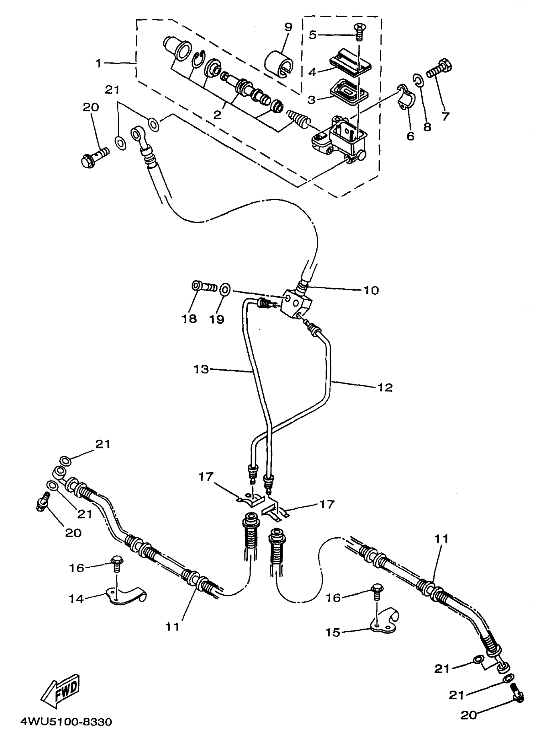 Yamaha YFM350FWBKC (BIG BEAR 4WD) 4WU50 1998 FRONT MASTER CYLINDER Diagram