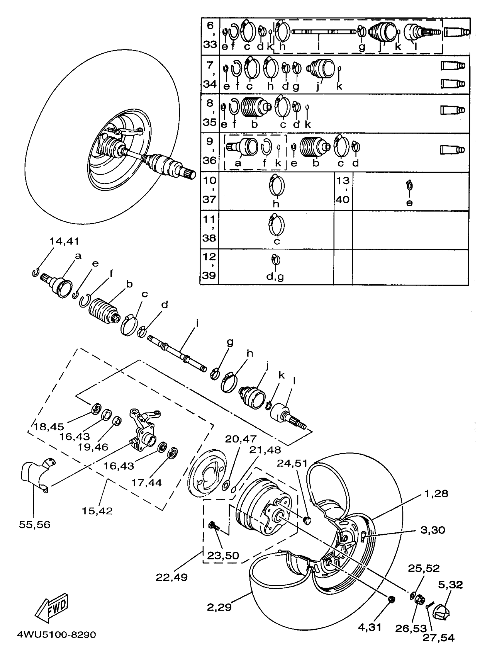 Yamaha YFM350FWBKC (BIG BEAR 4WD) 4WU50 1998 FRONT WHEEL Diagram