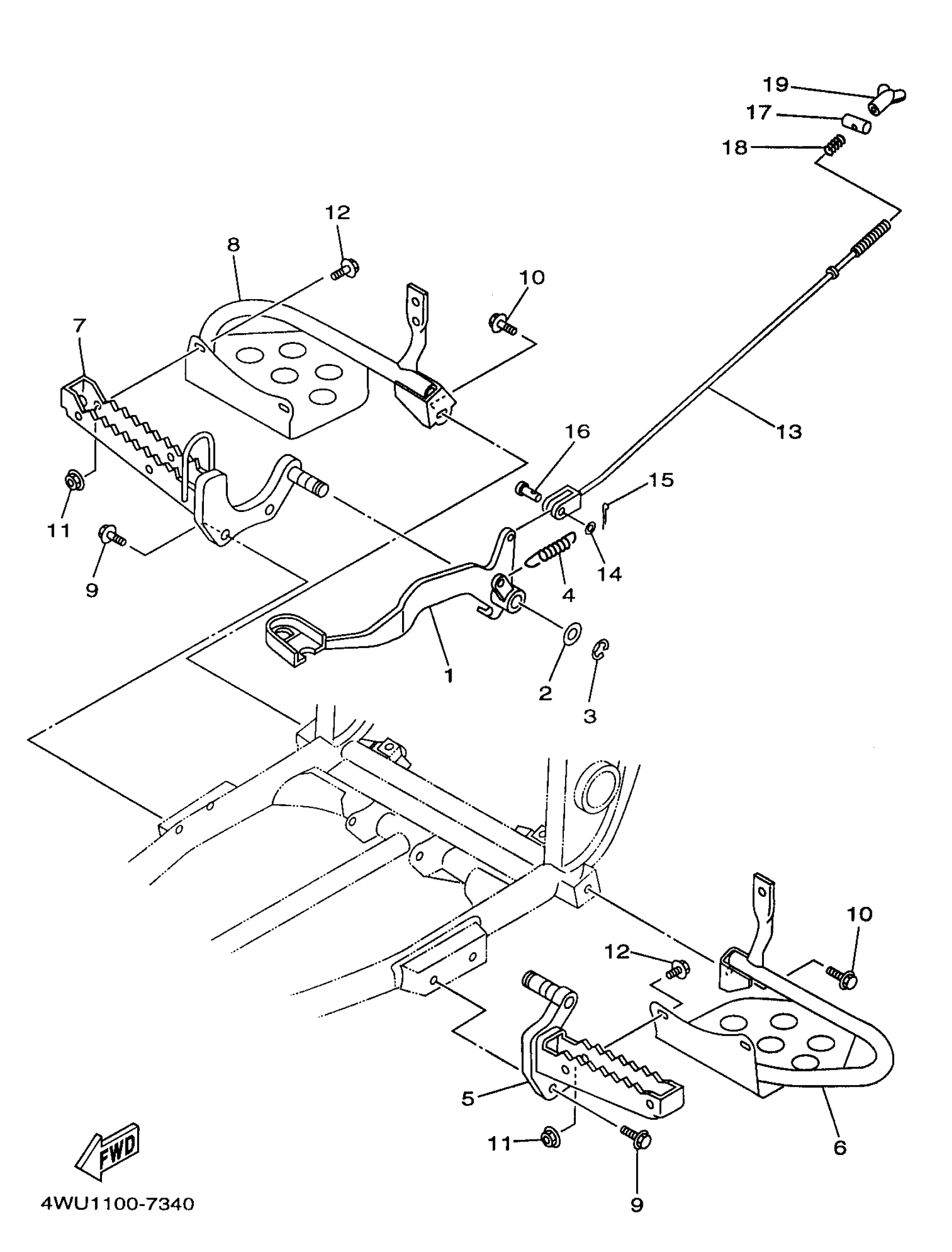 Yamaha YFM350FWBKC (BIG BEAR 4WD) 4WU50 1998 STAND FOOTREST Diagram