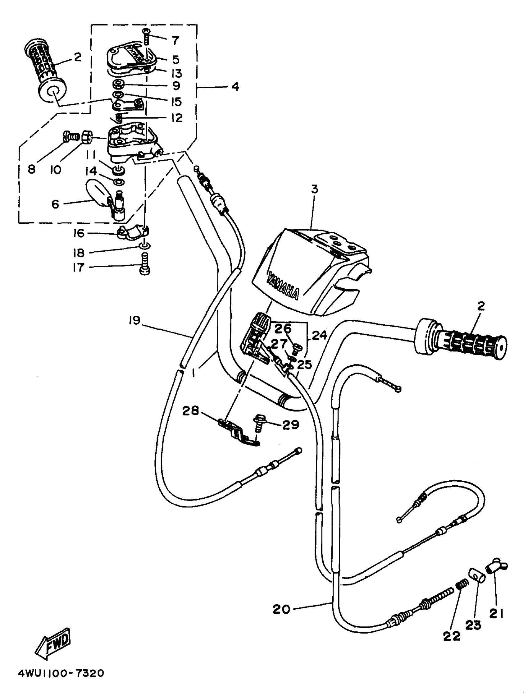Yamaha YFM350FWBKC (BIG BEAR 4WD) 4WU50 1998 STEERING HANDLE CABLE Diagram