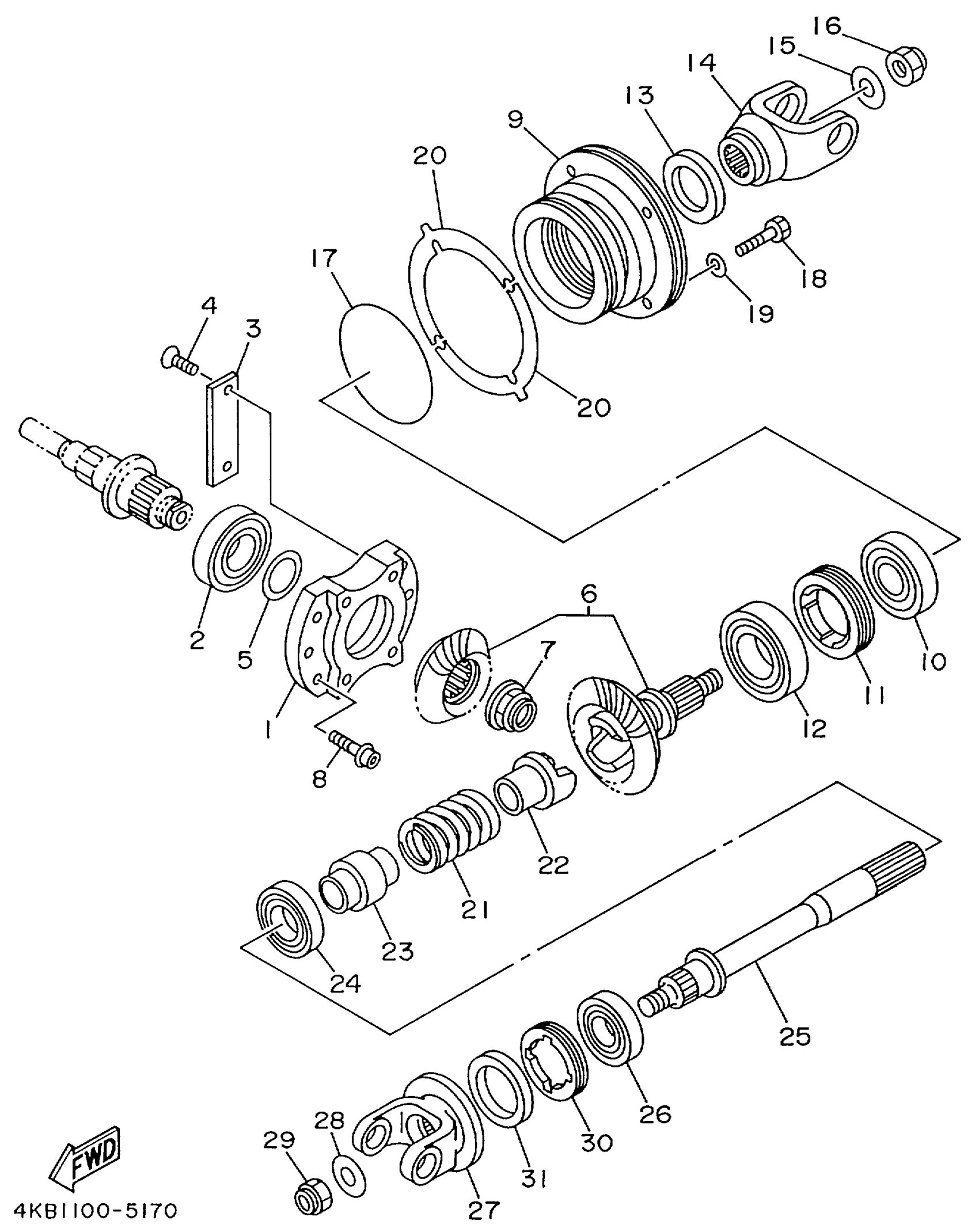 Yamaha YFM350FWBLC (BIG BEAR 4WD) 5FT1 1999 MIDDLE DRIVE GEAR Diagram