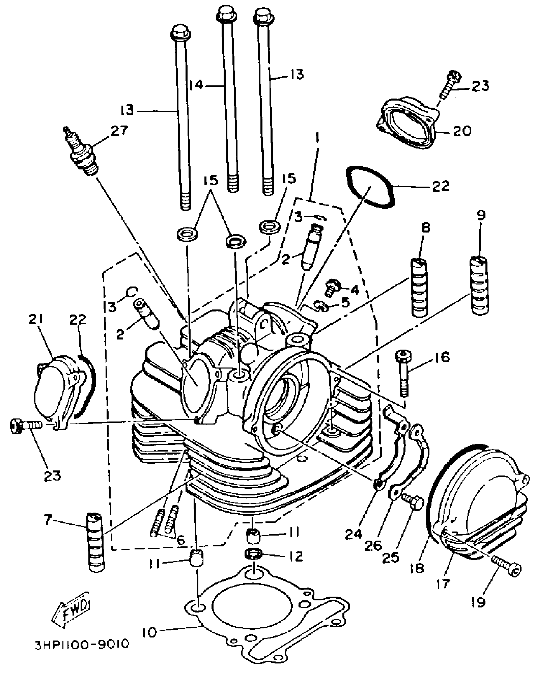Yamaha YFM350FWD (BIG BEAR 4WD) 3HNA 1992 CYLINDER HEAD Diagram