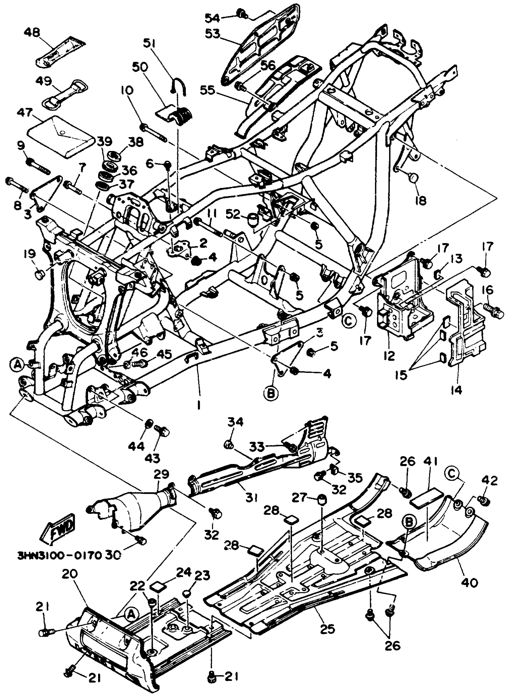 Yamaha YFM350FWD_MNH (BIG BEAR 4WD) 3HNA 1992 FRAME Diagram