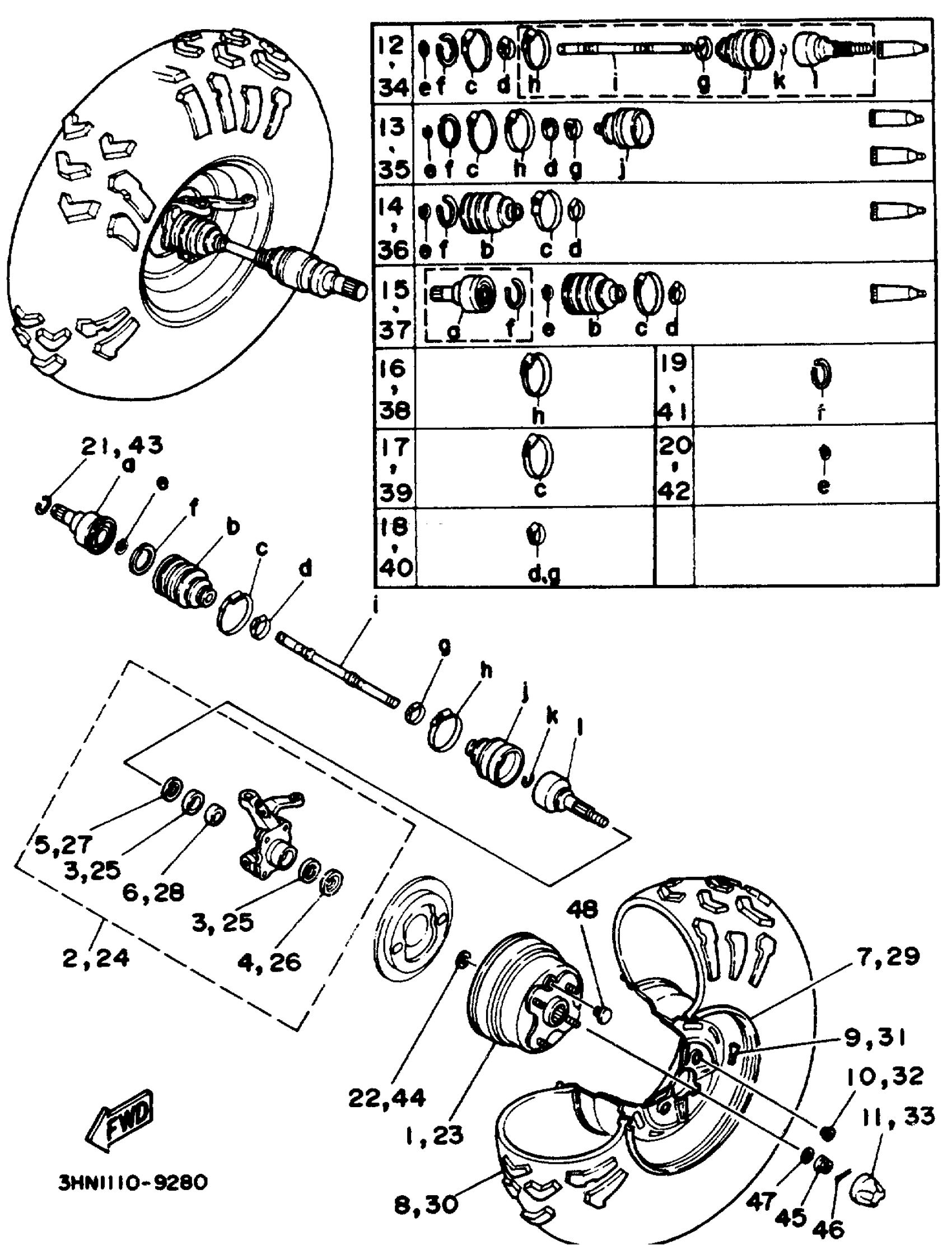 Yamaha YFM350FWD_MNH (BIG BEAR 4WD) 3HNA 1992 FRONT WHEEL Diagram