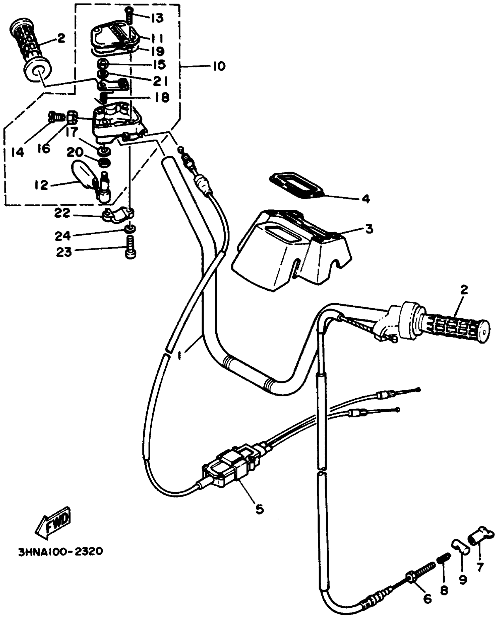 Yamaha YFM350FWD_MNH (BIG BEAR 4WD) 3HNA 1992 HANDLEBAR - CABLE Diagram