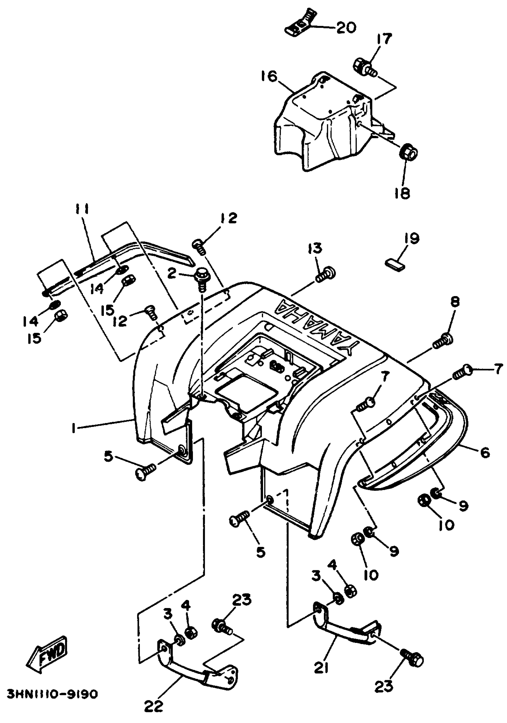 Yamaha YFM350FWD_MNH (BIG BEAR 4WD) 3HNA 1992 REAR FENDER Diagram