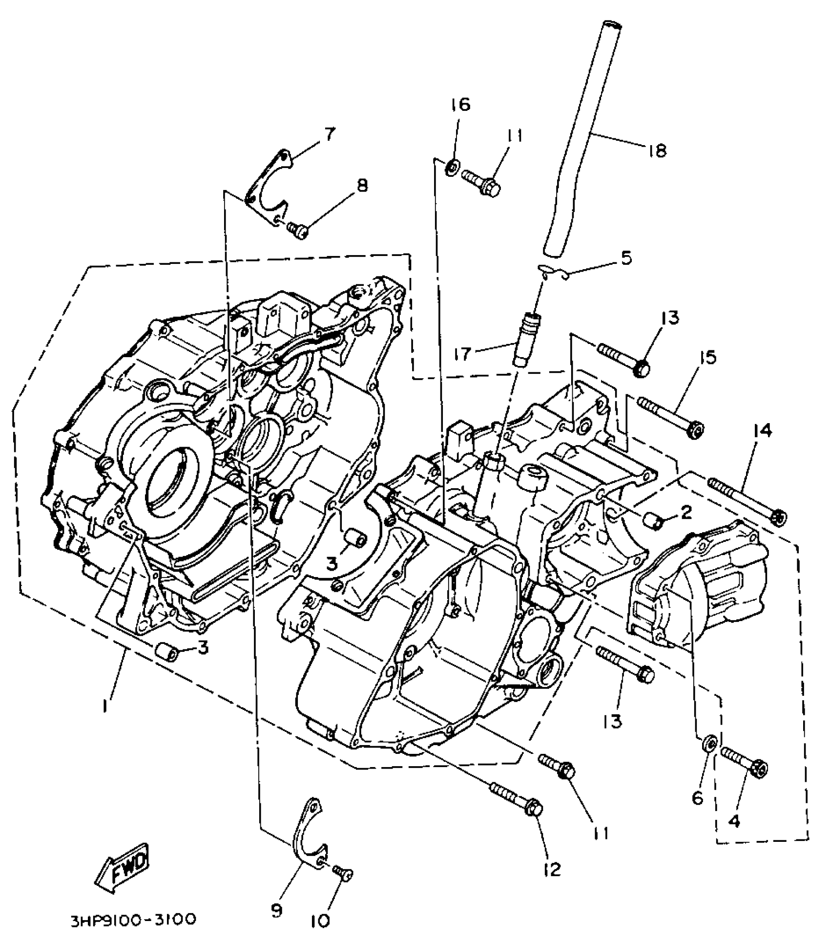 Yamaha YFM350FWE (BIG BEAR 4WD) 3HND 1993 CRANKCASE Diagram