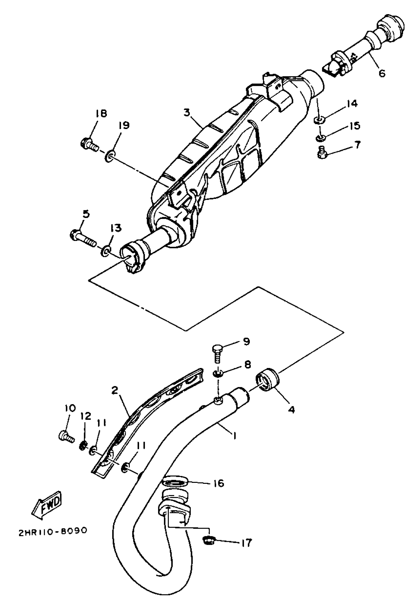 Yamaha YFM350FWE (BIG BEAR 4WD) 3HND 1993 EXHAUST Diagram