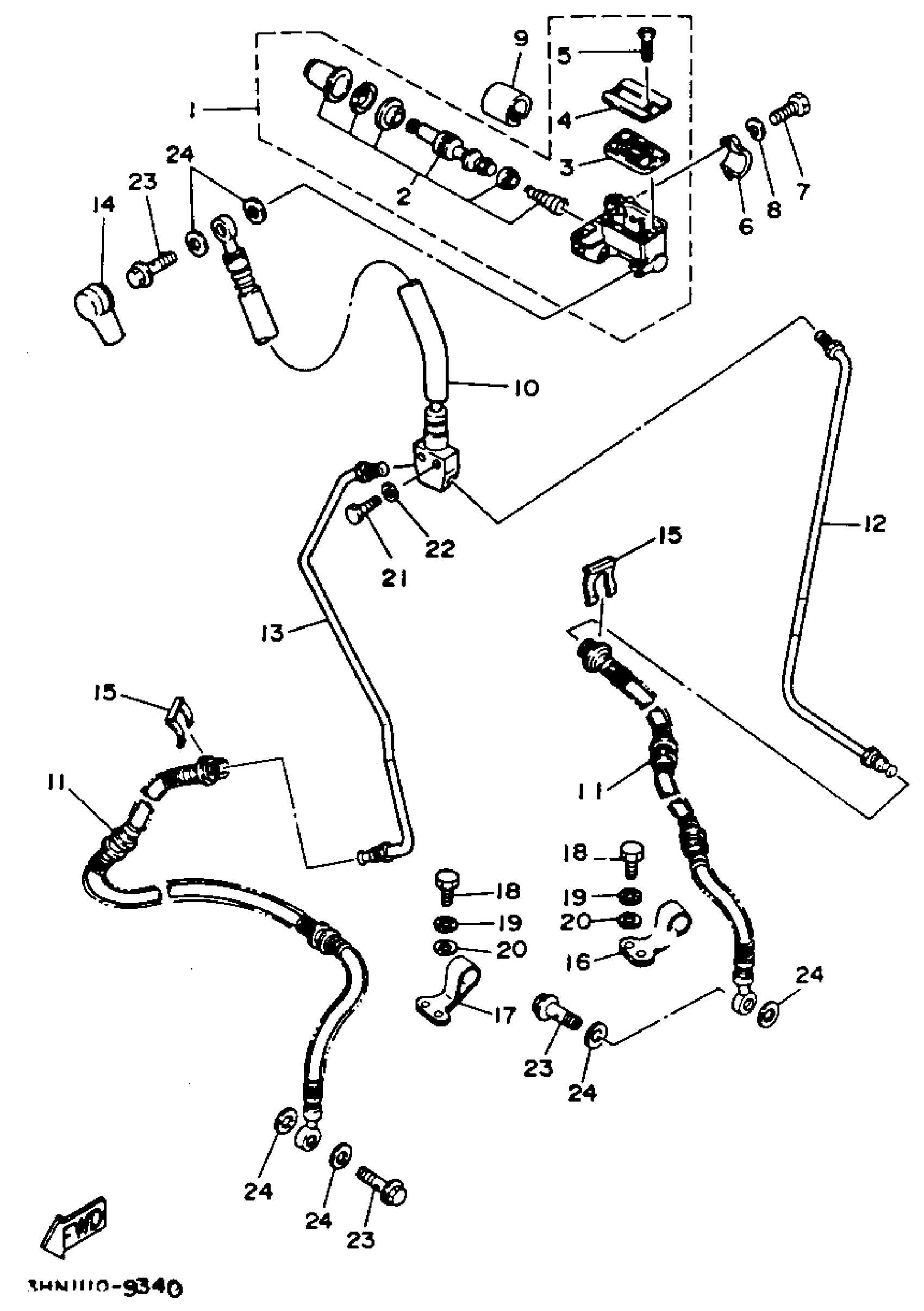 Yamaha YFM350FWE (BIG BEAR 4WD) 3HND 1993 FRONT MASTER CYLINDER Diagram