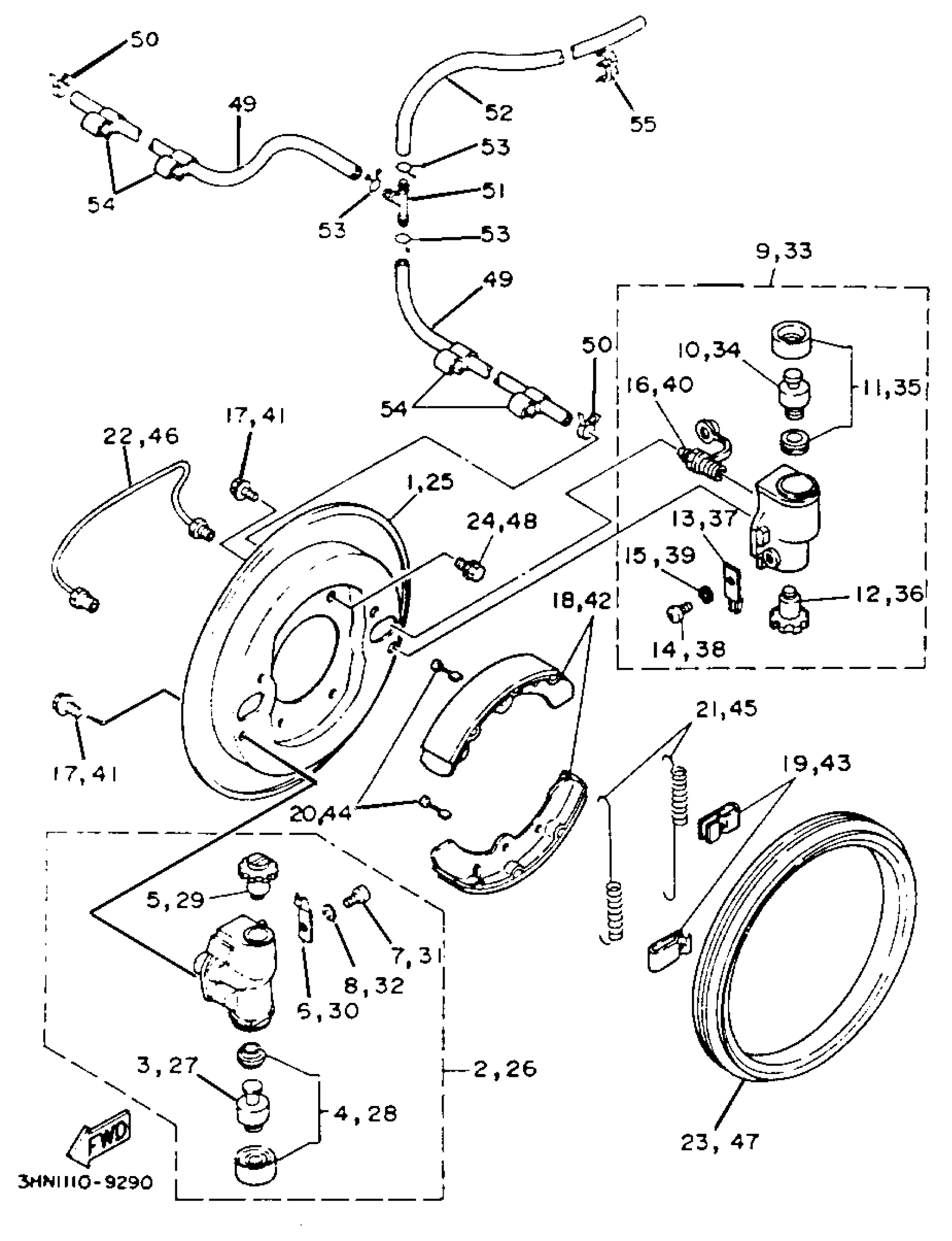 Yamaha YFM350FWE_MNH (BIG BEAR 4WD) 3HND 1993 FRONT BRAKE Diagram