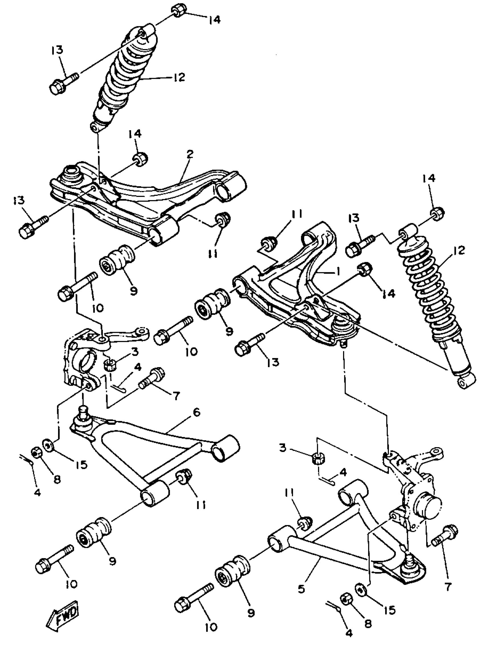 Yamaha YFM350FWE_MNH (BIG BEAR 4WD) 3HND 1993 FRONT SUSPENSION - WHEEL Diagram