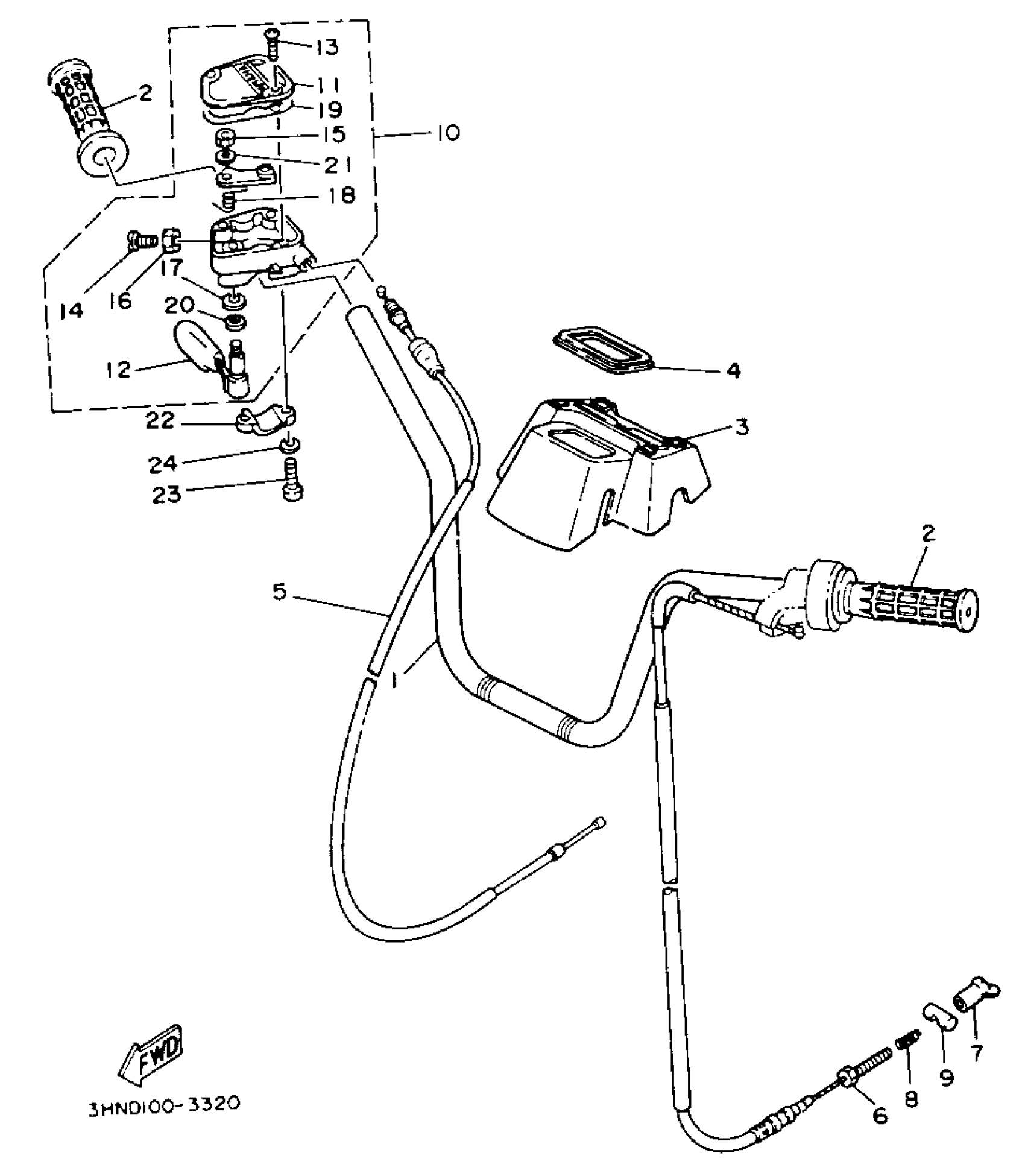 Yamaha YFM350FWE_MNH (BIG BEAR 4WD) 3HND 1993 HANDLEBAR - CABLE Diagram