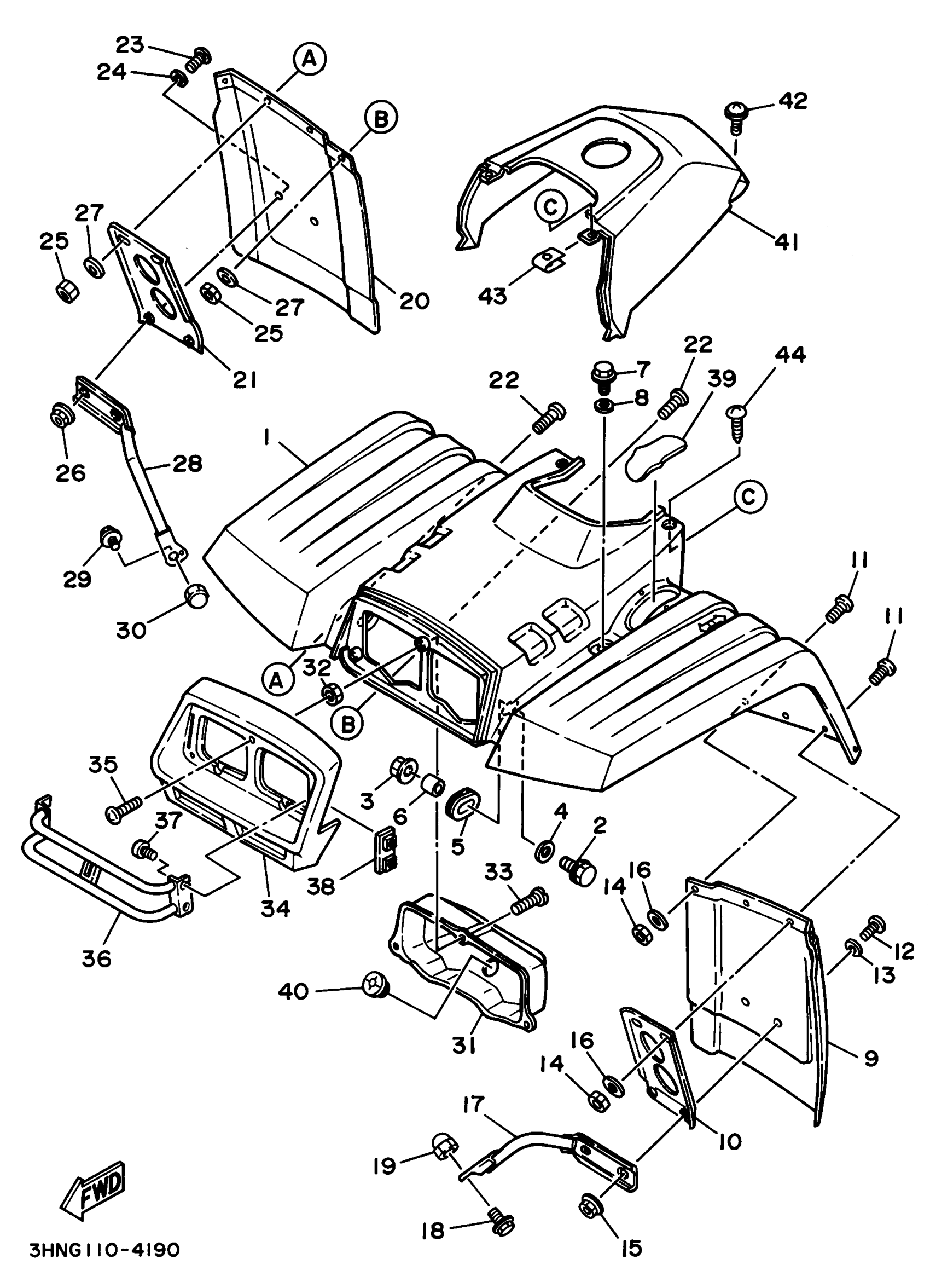 Yamaha YFM350FWF (BIG BEAR 4WD) 3HNG 1994 FRONT FENDER Diagram