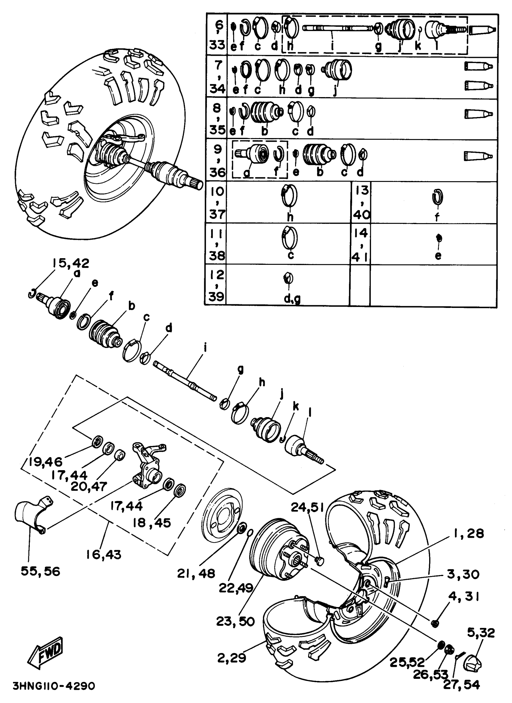 Yamaha YFM350FWG (BIG BEAR 4WD) 1995 FRONT WHEEL Diagram