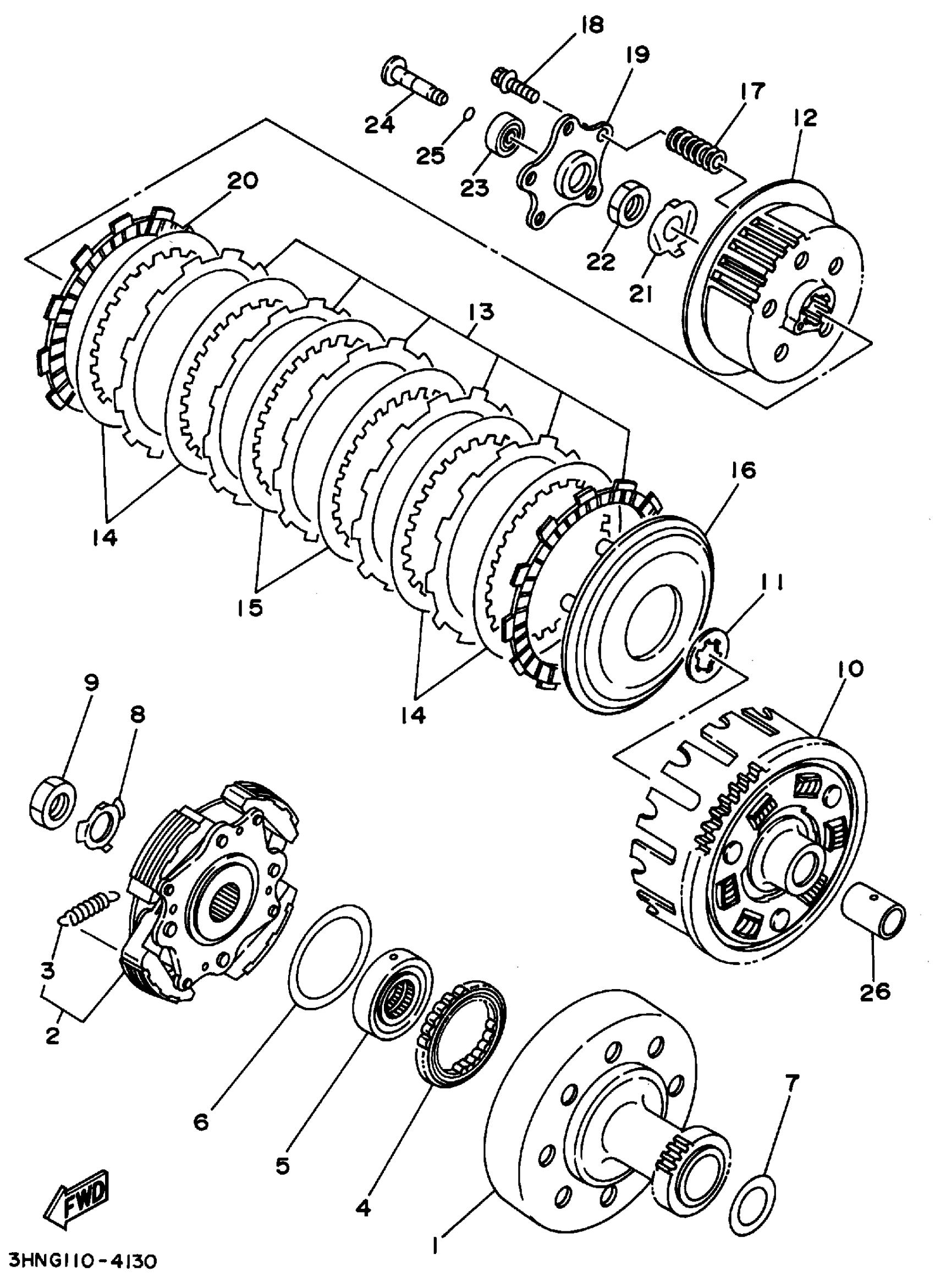 Yamaha YFM350FWG_MNH (BIG BEAR 4WD) 3HNK 1995 CLUTCH Diagram