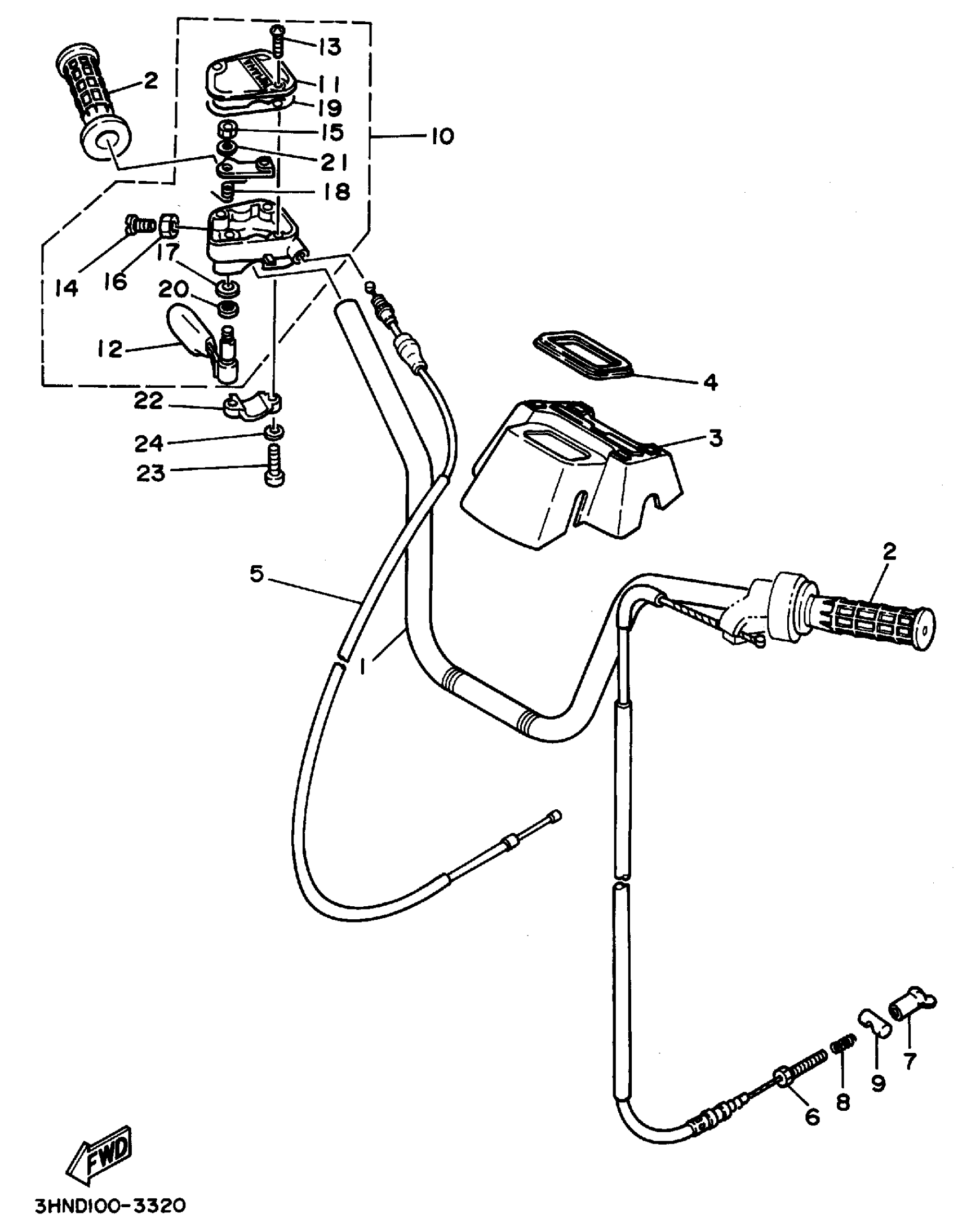 Yamaha YFM350FWG_MNH (BIG BEAR 4WD) 3HNK 1995 STEERING HANDLE CABLE Diagram