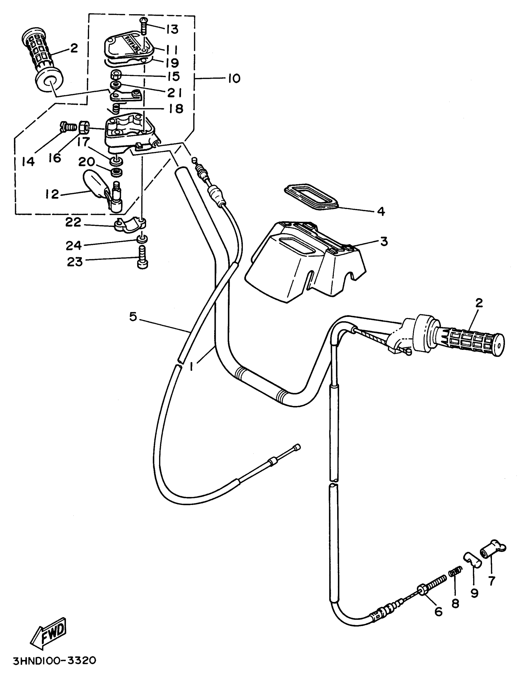 Yamaha YFM350FWH (BIG BEAR 4WD) 3HNR 1996 STEERING HANDLE - CABLE Diagram